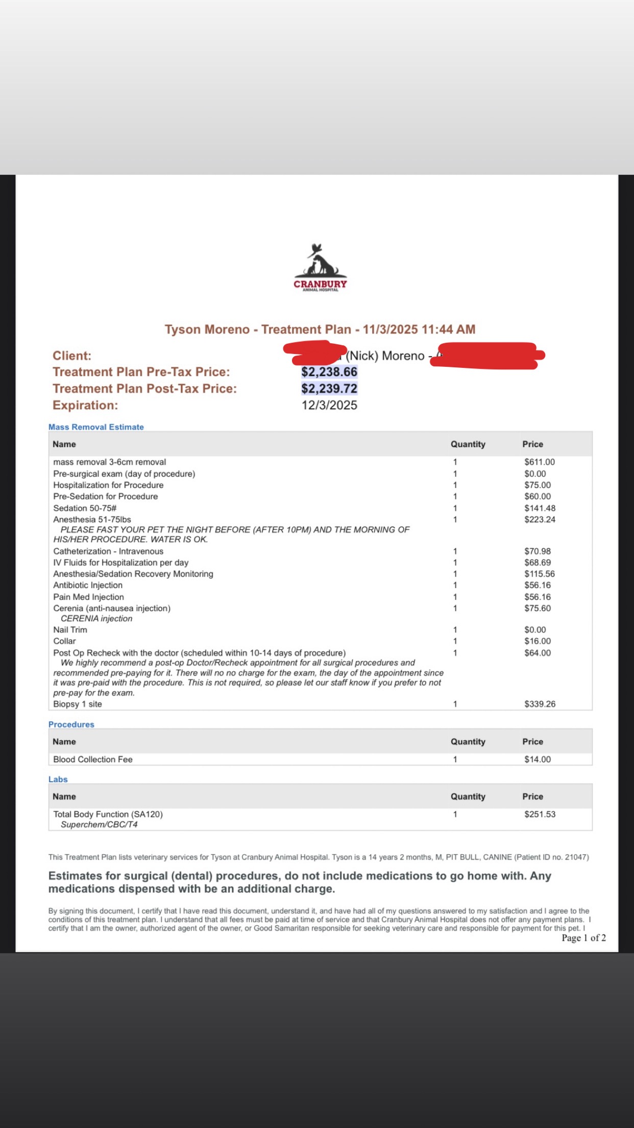 Hello, my name is Nicholas. This is Tyson, a senior dog who needs surgery to remove an infected tumor. As a broke college student working full time while attending school, I can't afford to pay for his surgery on my own. Tyson and I would be incredibly grateful for any assistance. I truly don't want to see my best friend in pain.
