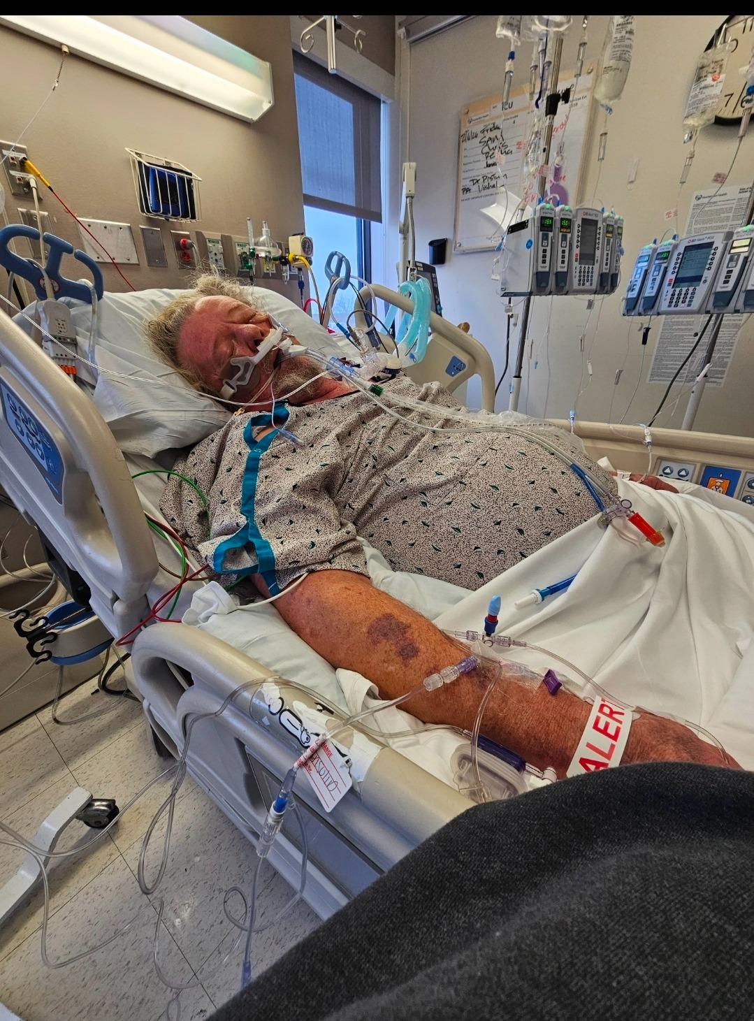 my father has been in an induced coma now for 2 weeks at Penn Medicine in philly. they bring him out of sedation for a couple hours a day. yesterday he was able to wiggle his toes for the first time and it was on command. he's been opening his eyes especially when you yell his name and they get bigger. he can move his head slowly back and forth. he can also move his mouth back and forth. his ECMO machine is at 30 currently. he will have a long road of recovery ahead of him. please pray for him❤️