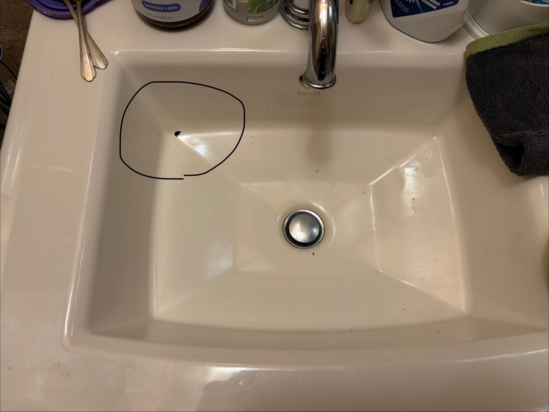 My family has decided we chipped the sink in our bathroom (we did not-see pics) & now my family is THROWING US OUT with less than 2 weeks' notice.