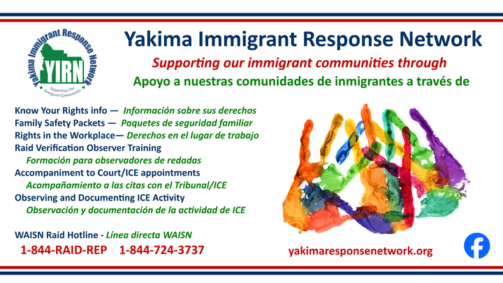 All funds will be dispersed by the Yakima Immigrant Response Network (YIRN). YIRN is a local grassroots, non-profit organization of volunteers operating since 2017 and dedicated to providing humanitarian support and resources to our immigrant families.