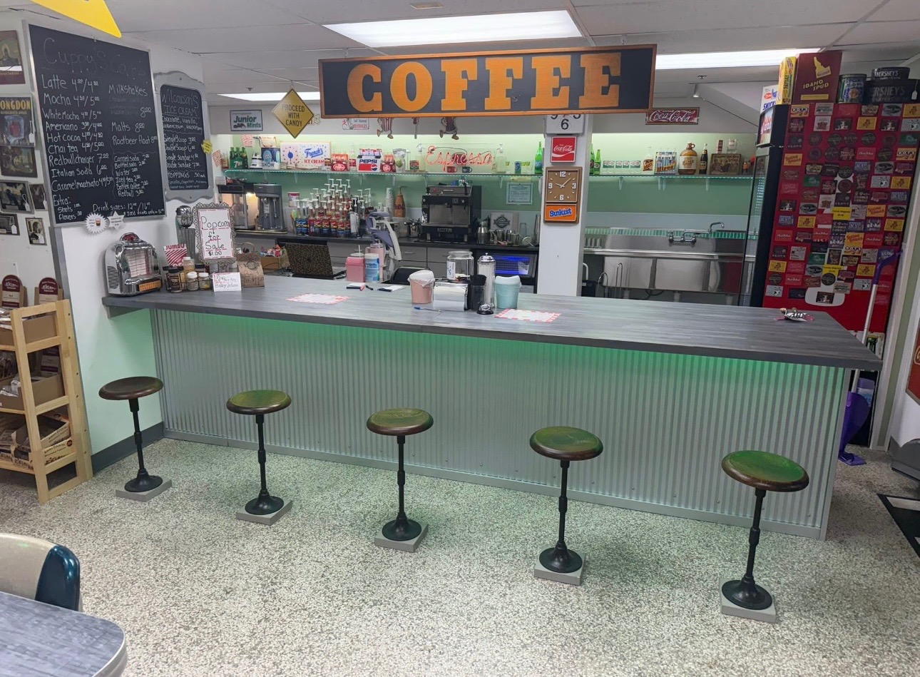 Unfortunately, this was not regular flooding — it was sewer wastewater and solids coming through our drains. Because of this, Cuppy’s Café and Candy Corner suffered a complete loss. Every single piece of candy (300+ items), every bag of popcorn, and every food item had to be thrown away to ensure the health and safety of everyone. The entire coffee shop had to be gutted, including all the newly built kitchen cabinets and counters, which were removed and taken to the dump.