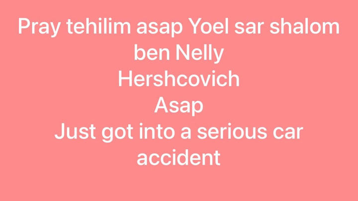 The community is raising funds to assist with medical expenses and to support the Hershcovich family. Yoel Hershcovich was struck by a vehicle while riding a gas-powered bicycle and is currently in critical condition in a medically induced coma. Any contribution, no matter the size, will be greatly appreciated and will directly help with medical bills and family needs.