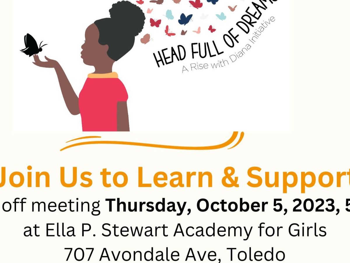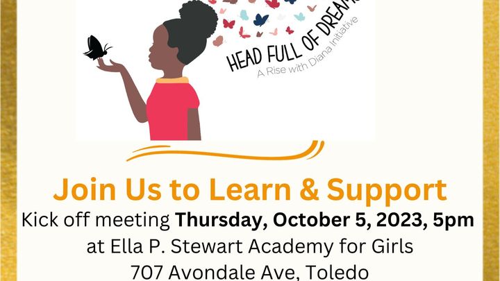 Join us on October 5, 2023, 5pmEST at Ella P. Stewart Academy for Girls, 707 Avondale, Toledo Ohio for our Head Full of Dreams (HFOD) Kick-Off to Learn and Support our Efforts to Help Young Girls Dream and Build their Confidence.