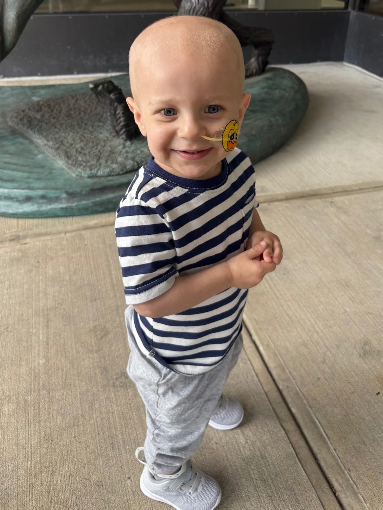 Zach was admitted that very day, launching an overwhelming schedule of biopsies, MRIs, MIBG scans, placement of feeding tubes and IV lines, and his first round of chemotherapy. Despite the intensity, Zach surprised us—and his doctors—with an early positive response.