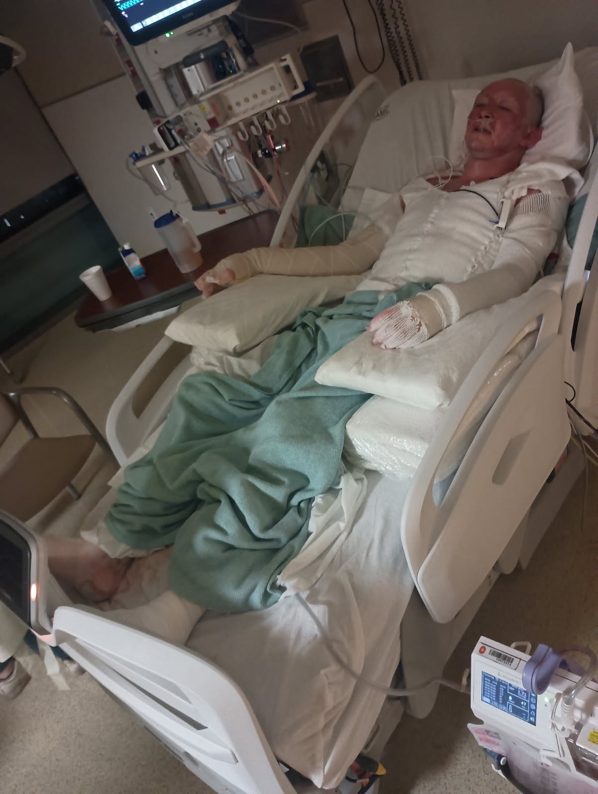 He’s had a hard road so far and a long one ahead of him in terms of healing, which leads me to the purpose of the GoFundMe. For the perceivable future, we do not have a home to go back to once he is out of the hospital, which should be soon. He’s going to need multiple weeks of continuous medical care and help from me (he has to use a walker and cannot use his hands), and we desperately need a stable environment for him to heal in.