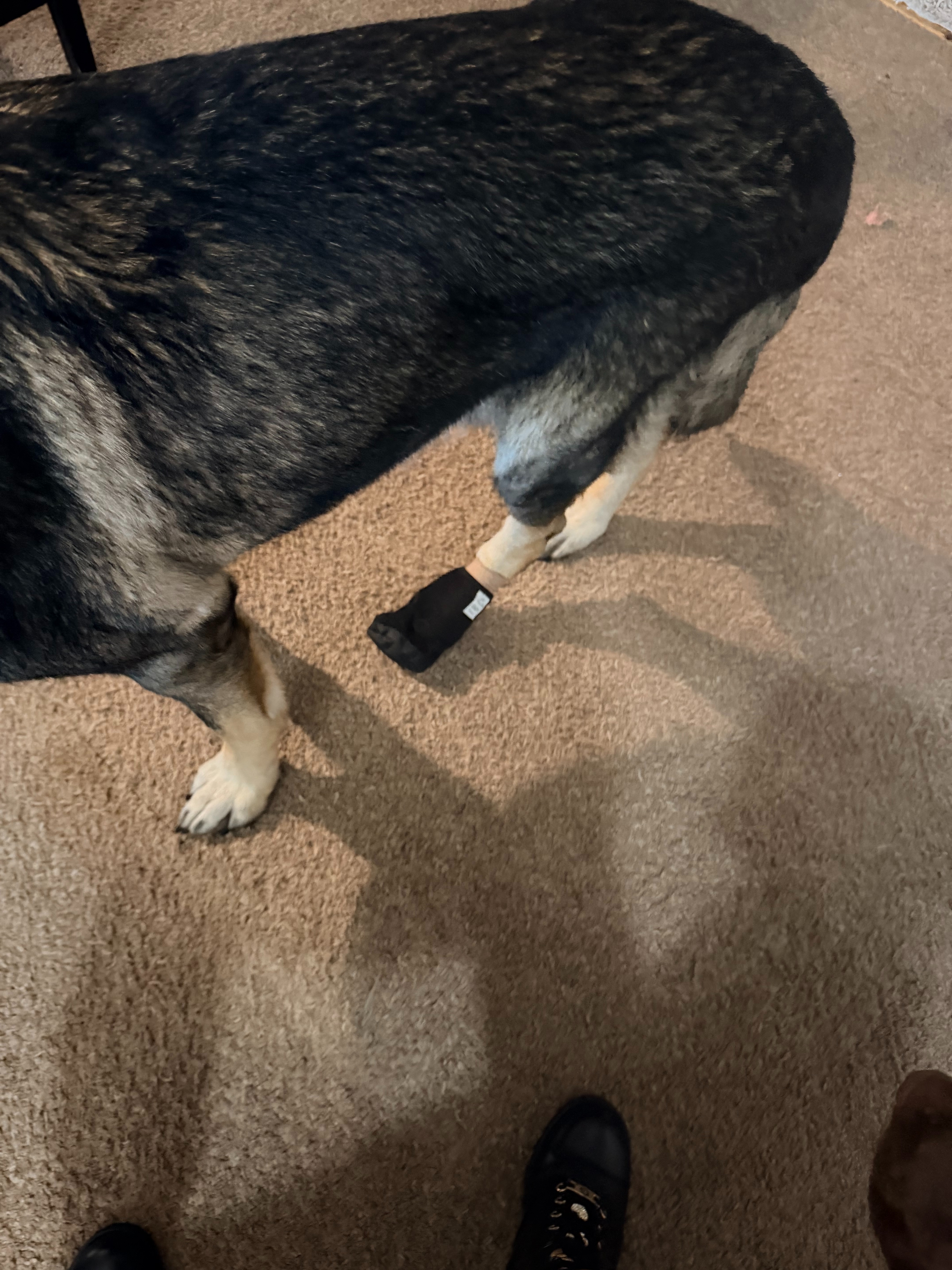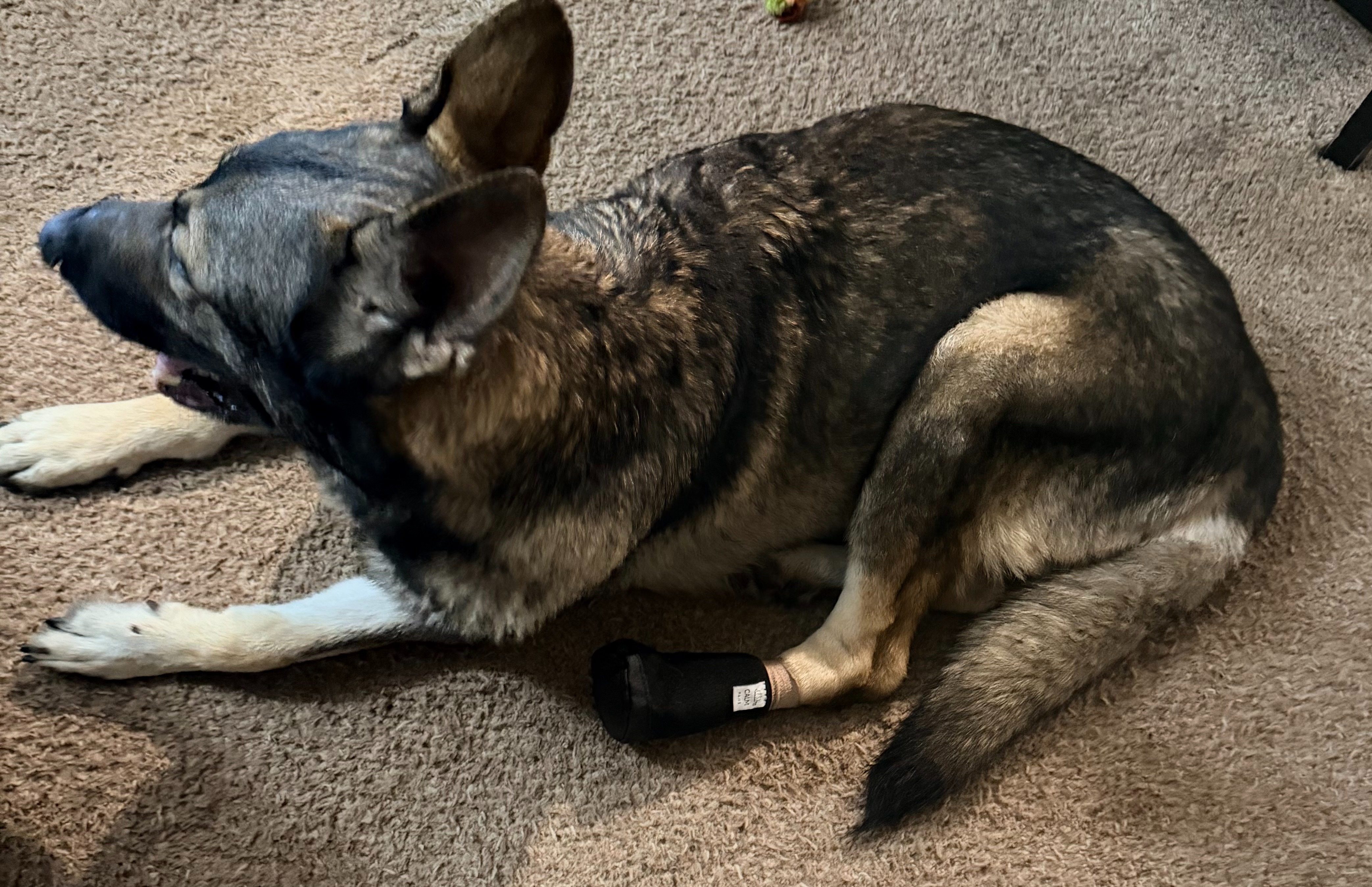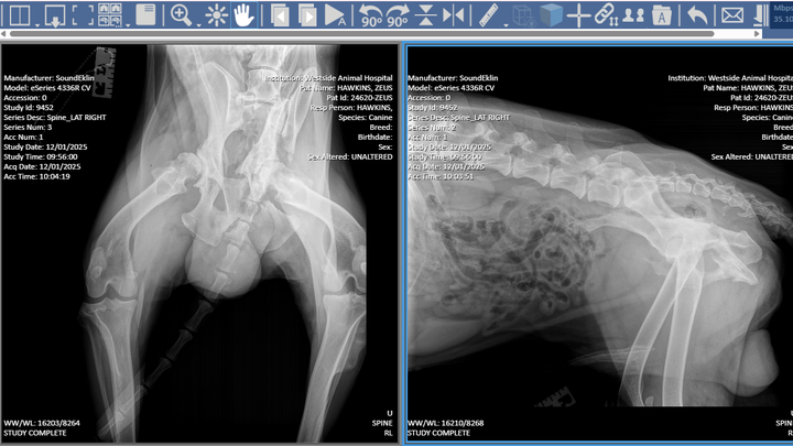 At this time, Zeus is being medically managed and closely monitored while awaiting an orthopedic surgical evaluation to determine the best course of treatment. He is currently prescribed Gabapentin, Carprofen, and Trazodone to help control pain, inflammation, and to keep him safely sedated in order to prevent further injury or additional damage while we await definitive surgical care.