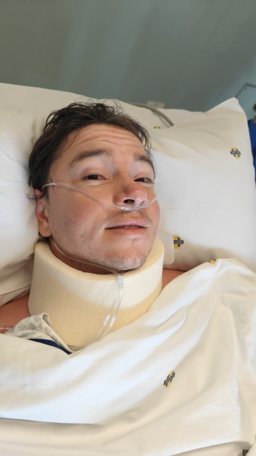 Eric sustained a C5 burst fracture with an incomplete spinal cord injury (classified as ASIA B). In simple terms: the vertebra in his neck shattered on impact, damaging his spinal cord. He currently has sensation below the injury but no voluntary movement from roughly the shoulders down.