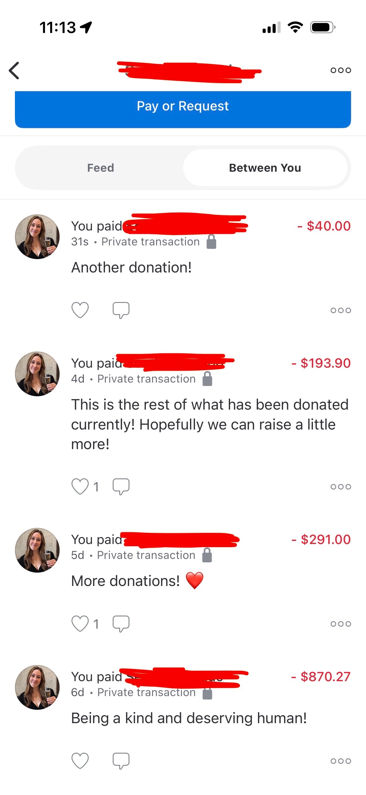 *added screenshot for transparency— all GoFundMe donations have been transferred to one person who is diving the funds between herself & two family members. Also have received donations outside of GoFundMe that I am sending on to them directly.