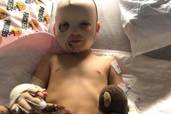 Isaac was hanging out at Nana’s when he tripped and fell into the campfire. He has 2nd degree burns to his hands and face and is at the burn unit in Madison until Wednesday at the earliest. The biggest concerns are the location of the burns, and that it was a dirty campfire, adding to the infection risk.