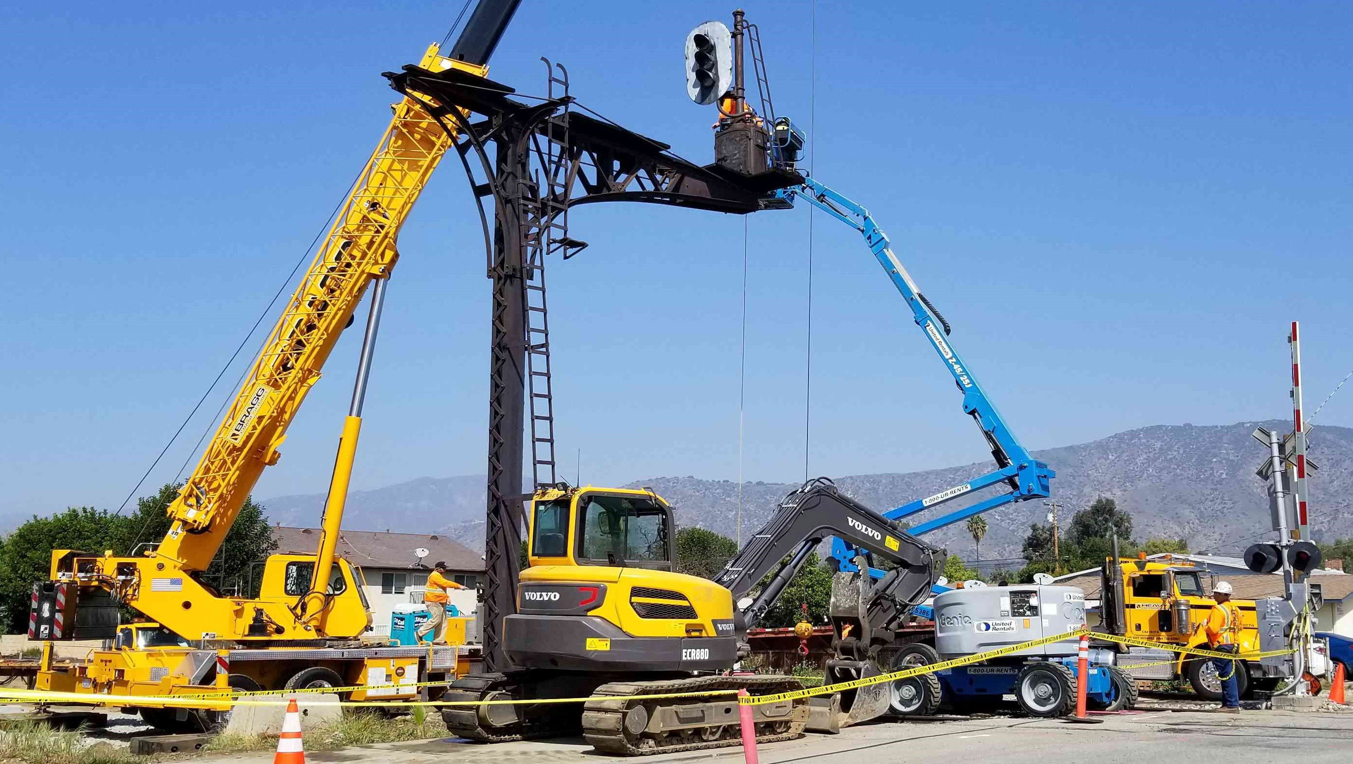 Santa Fe signal being dismantled in Glendora.