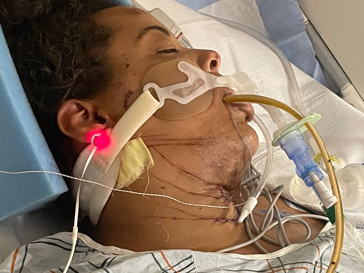-Her hand needs further reconstructive surgery from blocking the slashes to her neck, which is not covered by insurance.