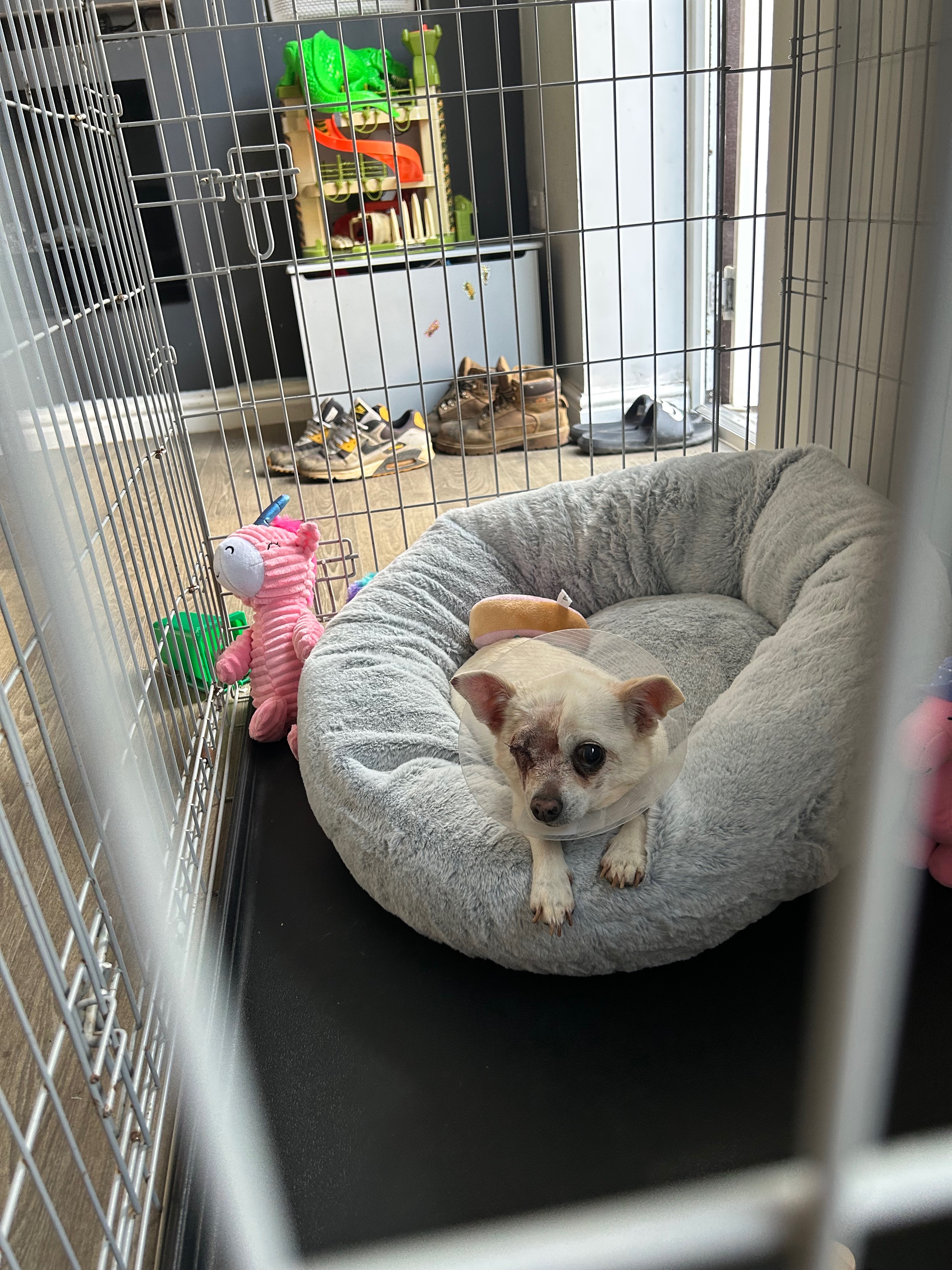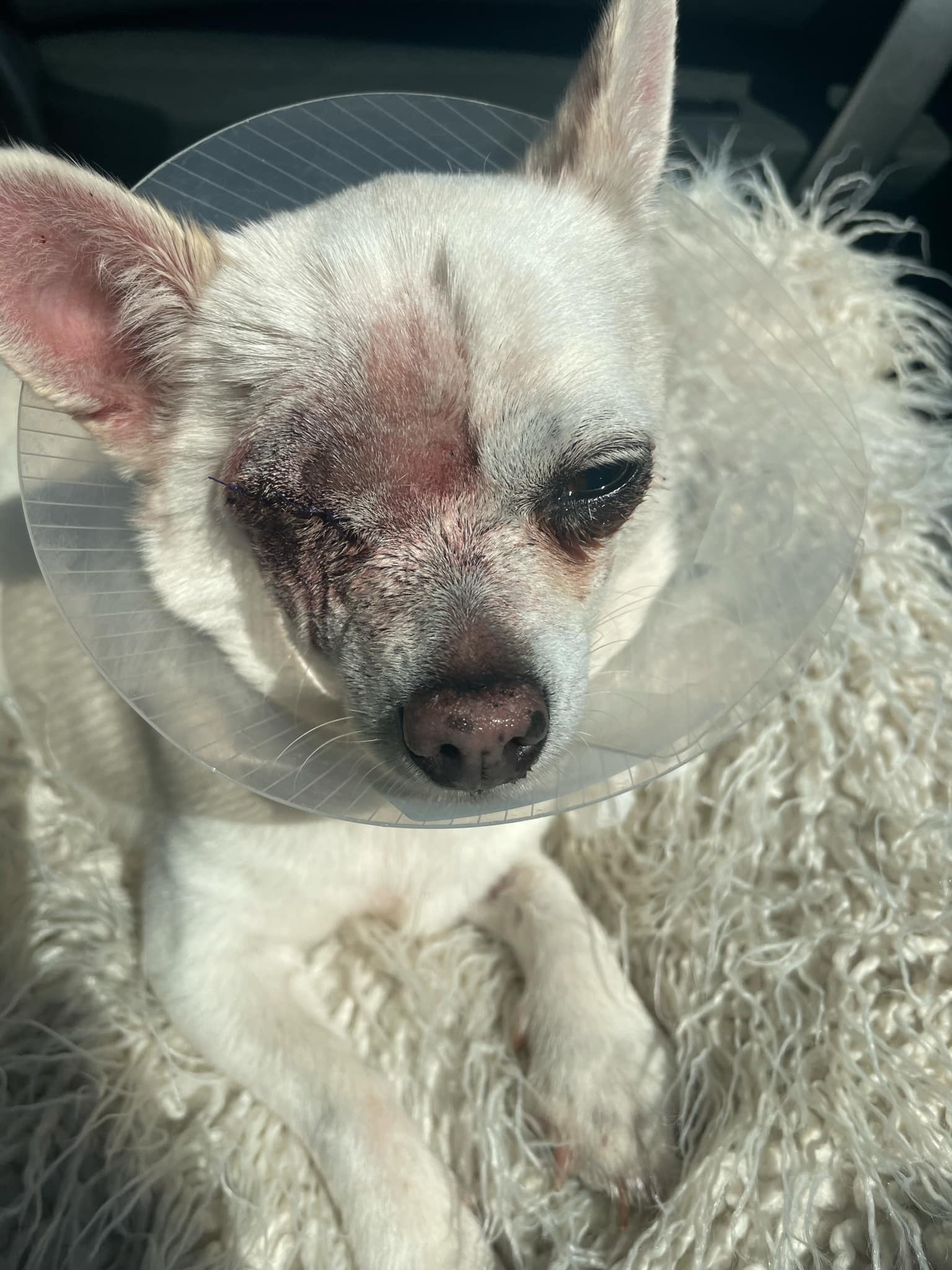 she has had to go to a out of hours emergency vet clinic in Horsham, to undergo surgery for her eye (removal).