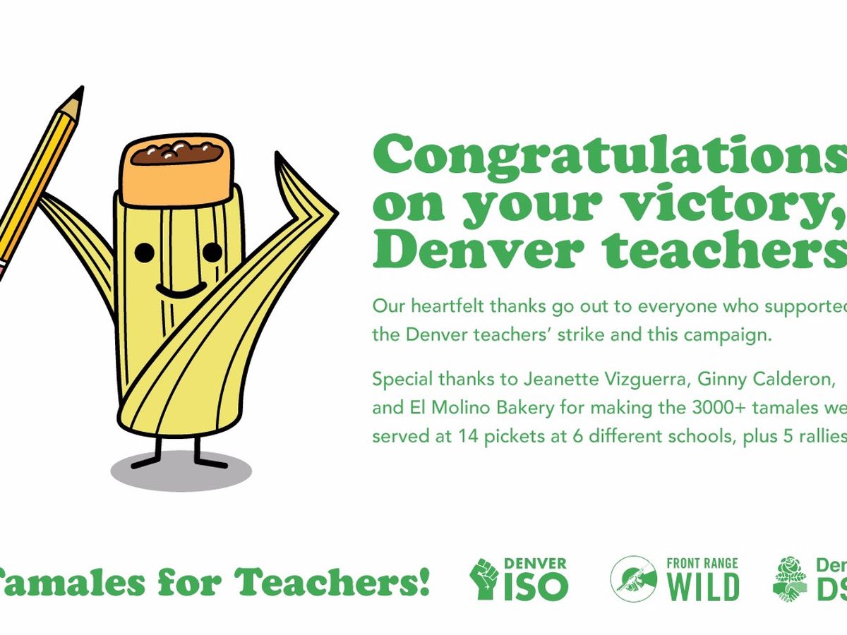 A note to all supporters: Funds will be collected by Carlos Valdez, a member of the Denver branch of the International Socialist Organization, a high school history teacher in Aurora, and a member of the Aurora Education Association teachers’ union. Funds will be paid out directly to our tamal provider partner, El Molino Bakery, a local mom & pop business that is owned by former undocumented immigrants and has served the Denver area for nearly two decades. Any remaining funds will be donated to the DCTA Strike Fund .