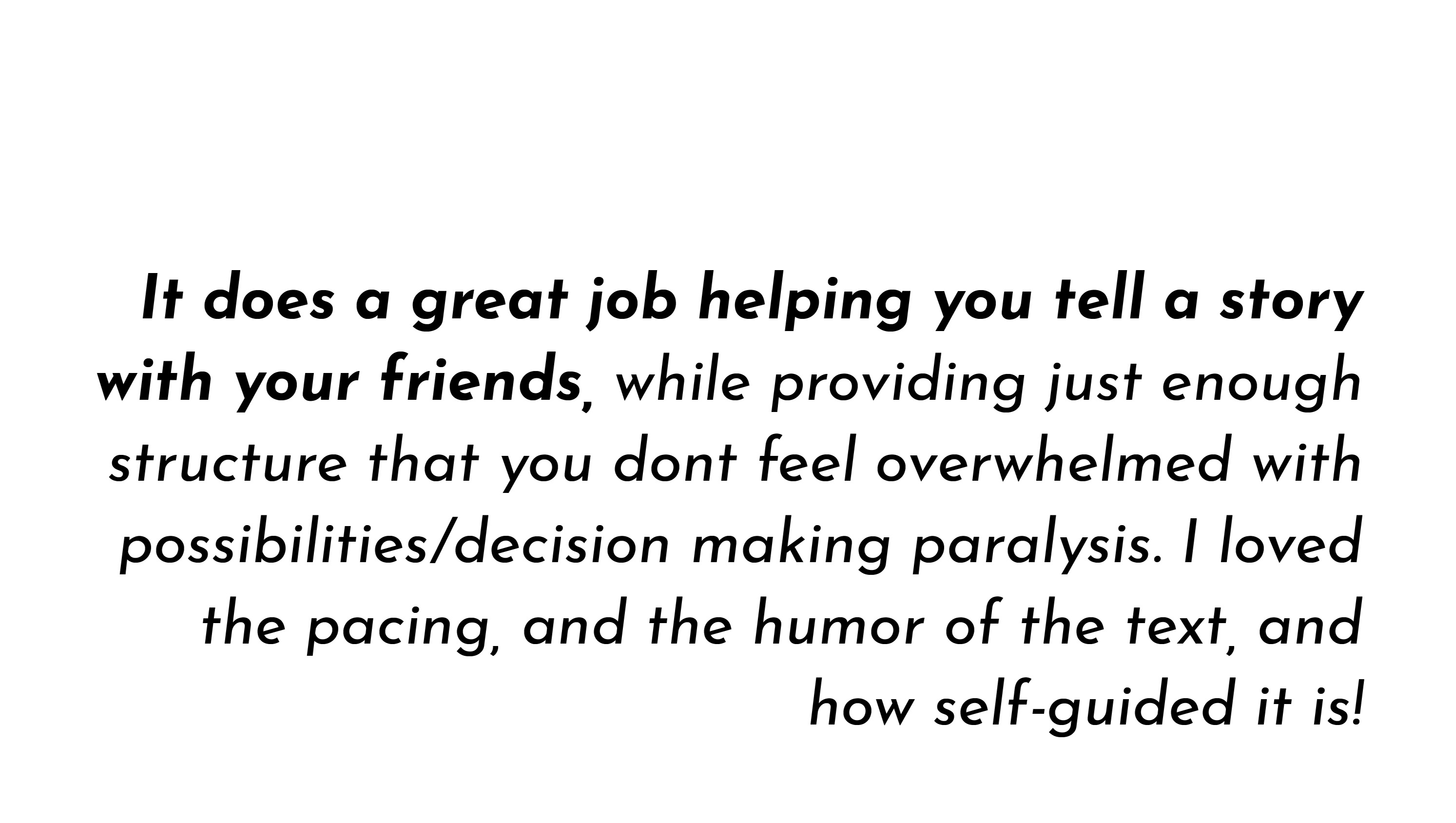 The game's “Afterword” offers additional advice on how to keep growing as a spontaneous storyteller.