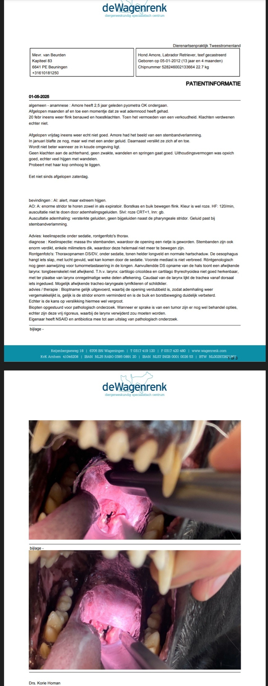 verslag van specialiste + foto's van geringe opening luchtpijp voor operatie (heb nog geen röntgenfoto's ontvangen);