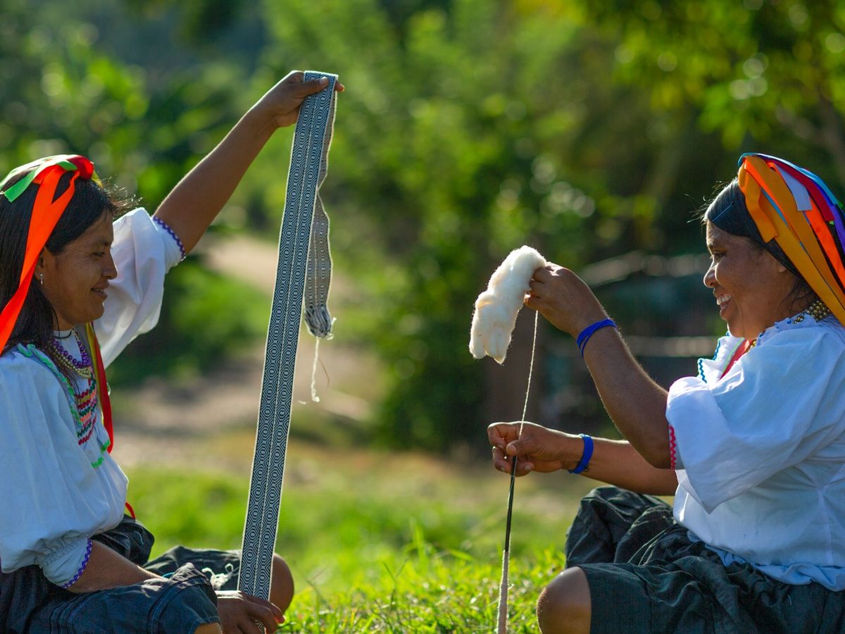 Nuestro trabajo se inició en el 2015, a partir de un convenio para conservar nuestros bosques con un programa del Ministerio del Ambiente de nuestro país y después con la ONG Rainforest Alliance. Durante ese tiempo, hemos fortalecido nuestras capacidades de gestión, trabajado con diseñadoras para crear nuevos productos y dar un valor agregado a nuestros tejidos, además de promover la recuperación del cultivo agroforestal de algodones nativos. También hemos impulsado el reconocimiento de nuestros conocimientos sobre los tejidos kichwa como patrimonio cultural de la Nación, el que se encuentra en proceso. Con ello, hemos llegado a nuevos mercados y logrado mejores precios por nuestro trabajo. Así, hemos podido mejorar los ingresos de nuestras familias con una actividad económica que cuida el medio ambiente, fomenta la transmisión de los conocimientos de nuestras abuelas y nos ayuda a criar a las nuevas generaciones.