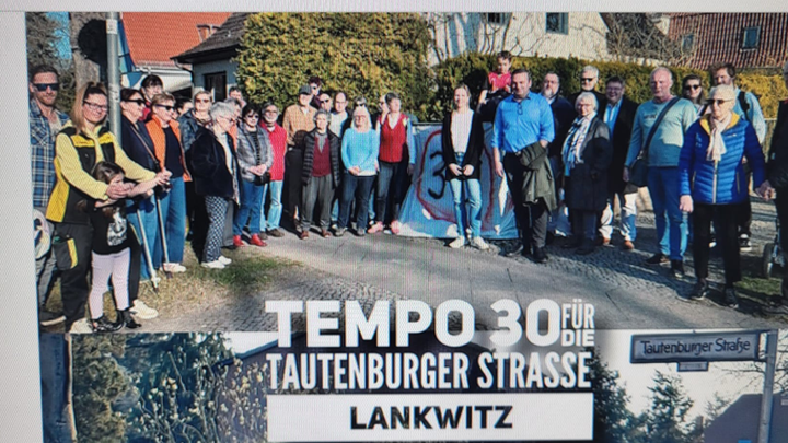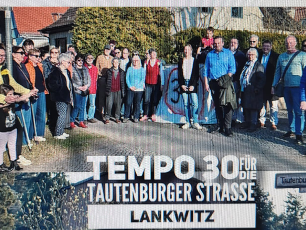 Wir Anwohner haben vor einem Jahr gemeinsam eine Bürgerinitiative für die Einführung von Tempo 30 gegründet und entsprechende Anträge bei der zuständigen Senatsverwaltung in Berlin gestellt. Das Bezirksamt Steglitz-Zehlendorf unterstützt uns ausdrücklich und der auch für Straßen zuständige Bezirksstadtrat, Herr Urban Aykal, steht an unserer Seite, s. Foto bei der ersten Demo am 2. April 2025.