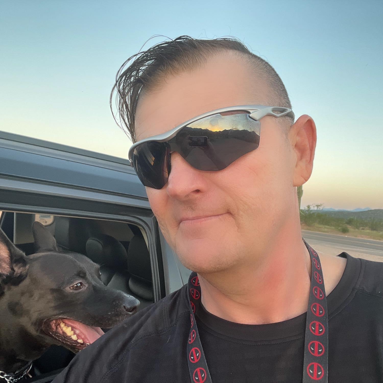 I loss my living situation and currently homeless showering at gyms and living PT out of my car.. Glitch is in good care with James.
