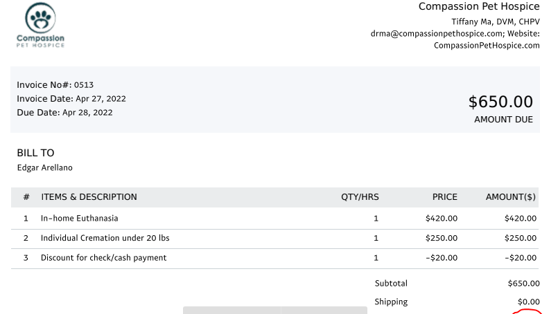 Yogi's Euthanasia. Very much recommend Dr. Ma at CompassionPetHospice.com