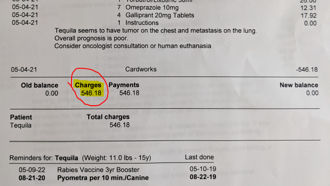 Yogi joined his pack across the rainbow bridge on 4/28/2022 after dealing with a month of seizures & Tequila joined her pack to wait for Yogi just a year prior, she crossed the rainbow bridge herself on 5/10/2021. Every now and then their vet care was more than average, but they were both really good dogs & they fought through multiple ailments this past decade, including a couple of coyote attacks! Their end of life vet care costs totaled $2,389.14