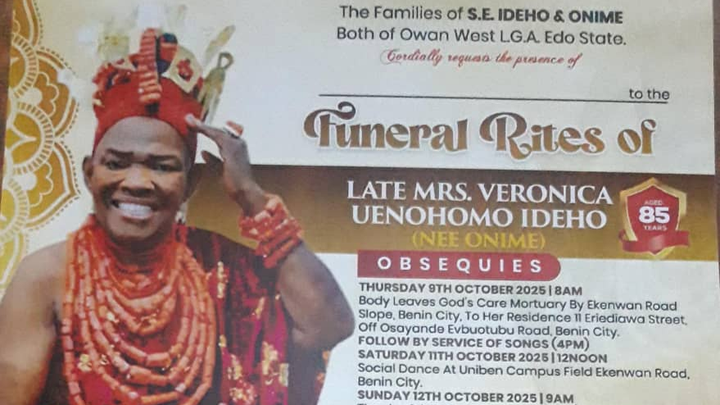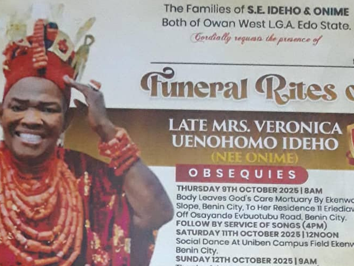 We are the Ideho family, and with heavy hearts, we share the passing of our beloved mother and grandmother, Mrs. Veronica Uenohomo Ideho. She was a woman who was always there for her family and community — a true source of love, strength, and inspiration to everyone around her.