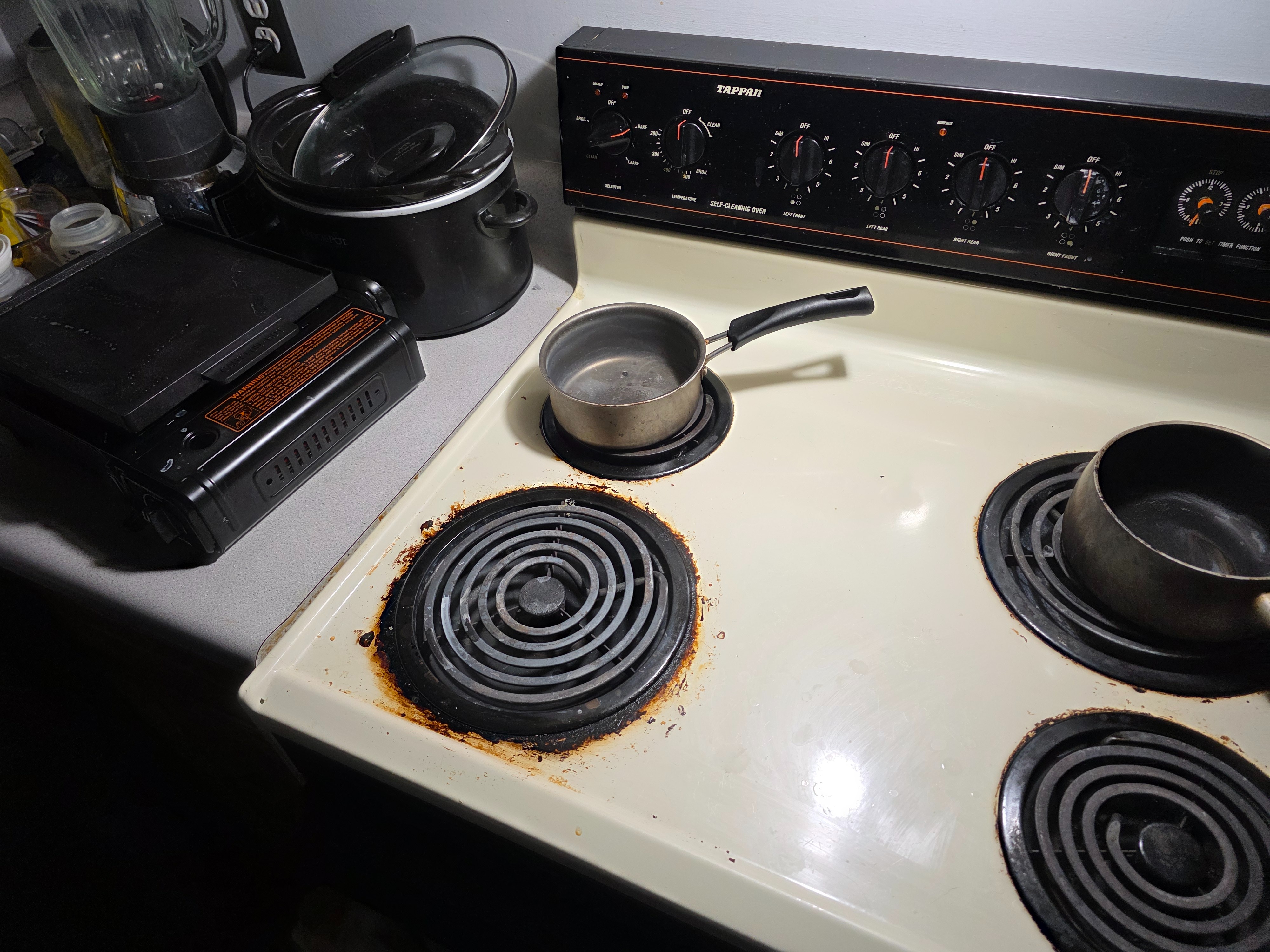 So, me, my wife, and our son currently live in a 2-bedroom, 1.5-bath townhouse. Ever since we moved in, we've had issues with appliances, mainly kitchen ones like our stove, dishwasher, and fridge. Our stove has shorts where the burners will overheat, and the oven will overheat as well. The bottom left burner is the biggest problem of all; it overheats the most and even melted a pot to the stove. My landlord won't replace it, and if I replace the oven, he told me we are getting evicted. Our fridge was replaced within a month of us moving in, but one night during a bad storm, we lost power in the house. After the storm, the fridge wouldn't keep food cool or freeze anything in the freezer. It turns out the defrost switch broke in the fridge, and it was continuously in defrost mode. We couldn't keep food in the house for more than 24 hours for 3 months until the fridge was finally fixed.