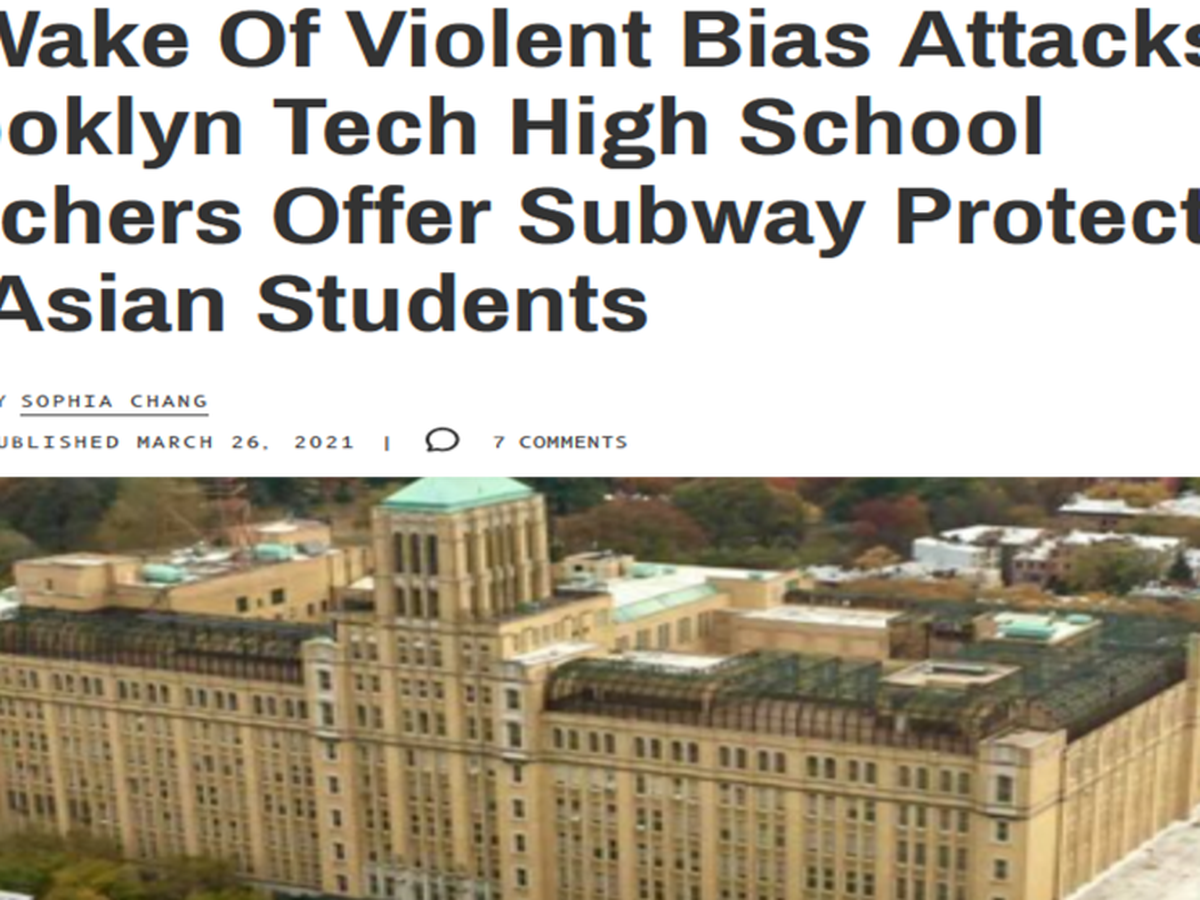 Last year, because of Asian Hate attacks, 15 Brooklyn Tech teachers volunteered to escort Tech students to and from home for their safety. They did this humbly on their own. https://gothamist.com/news/wake-hate-crime-surge-brooklyn-tech-high-school-teachers-offer-subway-protection-asian-students