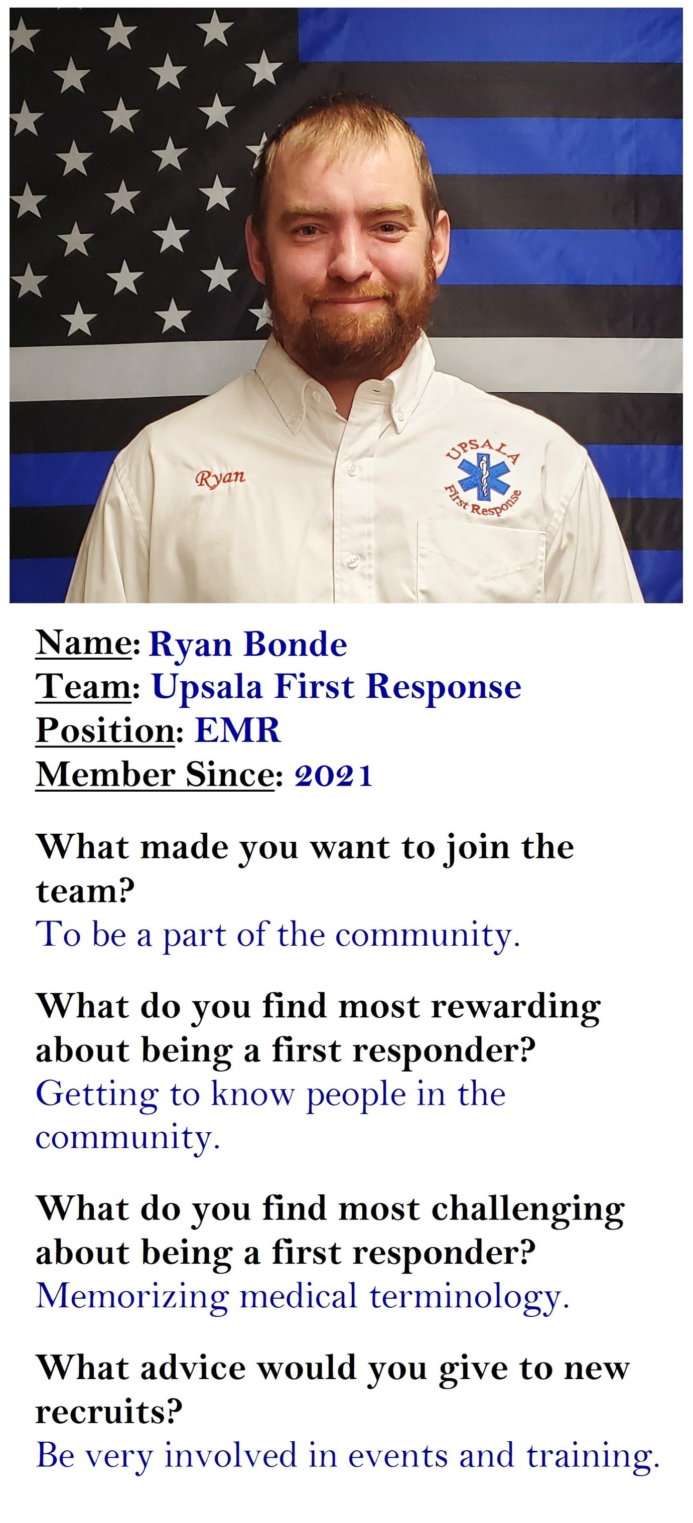 If you know Ryan and Alicia, you know they are the kind of people who show up—every time. Ryan is the neighbor who will fix your tractor without hesitation and serves selflessly on the Upsala EMS. Alicia brings warmth, kindness, and tireless care to everyone she works with—always with a smile and never seeking recognition.