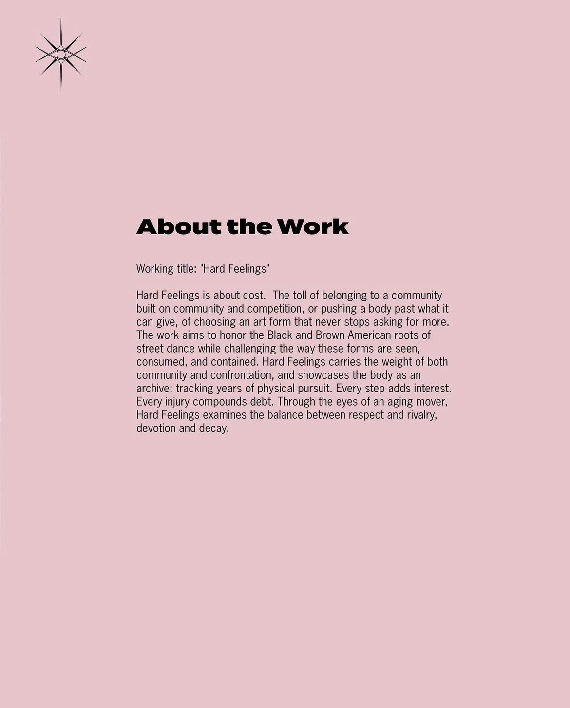 I’m creating this work as a celebration of the social and communal origins of street dance—not just as subtext, but as the story itself.
