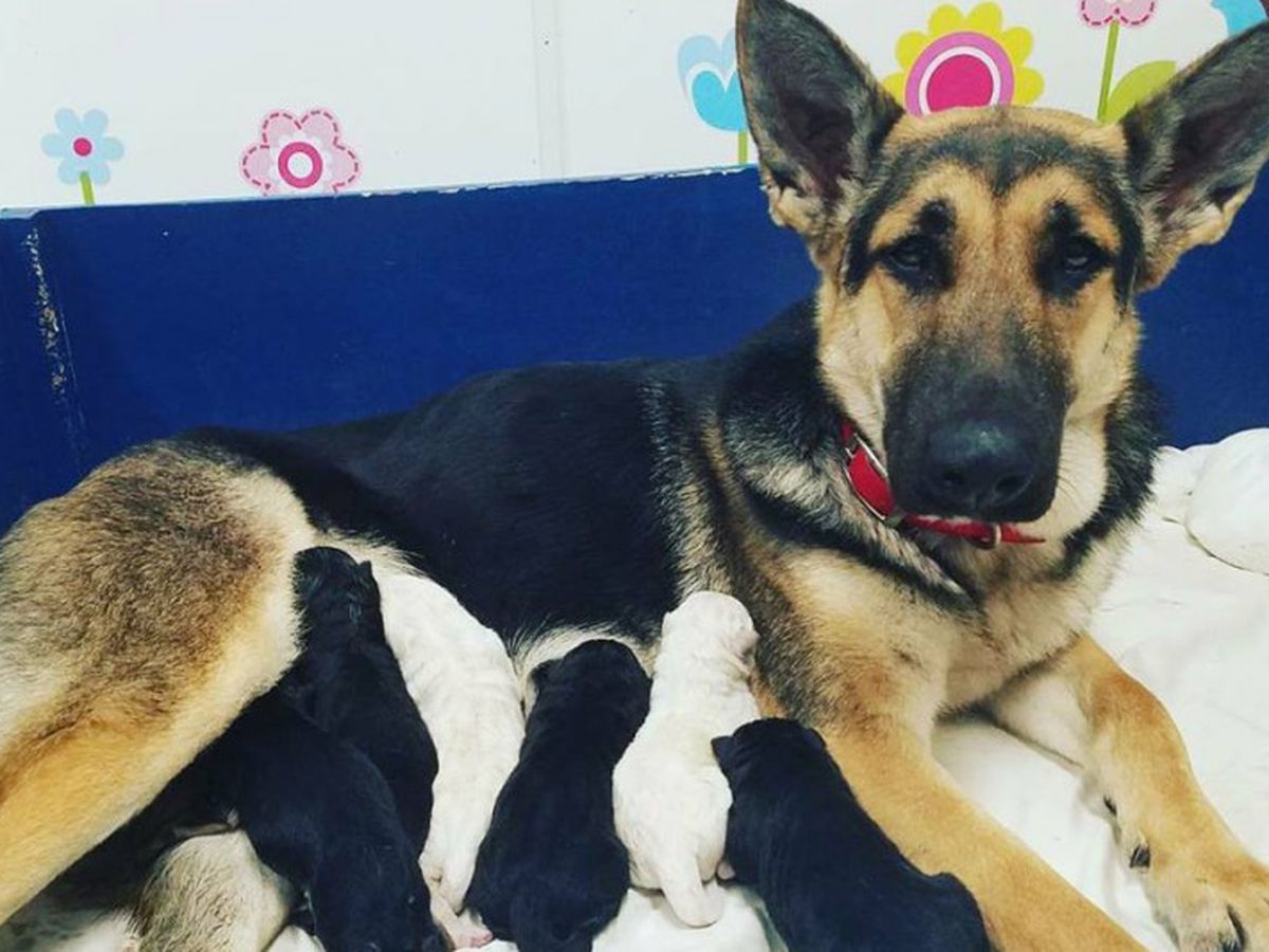 The Humane Society of Northwest Louisiana recently rescued Boris and Bubbles from a local animal control facility. Boris is male unaltered heartworm positive German Shepherd and Bubbles, a female German Shepherd who also was heartworm positive and PREGNANT! This bonded pair settled in nicely into the rescue. They were vaccinated and Boris was neutered and began his heartworm treatment. Bubbles was moved into her own personal room to deliver her soon to be puppies. During her stay in the room it became obvious she had severe separation anxiety and began tearing up the room and several kennels purchased for her. After 24 hours of being in her "own" room she gave birth to 6 beautiful puppies on Jan 28 2018. One of them, we named Blue, was born the color blue and Bubbles bit the umbilical cord too short. Blue was rushed to the Emergency Veterinarian and his precious life was saved. Bubbles was very thin after giving birth, almost emaciated but her and the 6 newborn puppies began to thrive and grow! On Monday Feb 12 Bubbles was unable to stand and was very lethargic., The puppies at this time only 15 days old would unfortunately lose the ability to nurse from her. Bubbles, passing out from the pain, was rushed to the veterinarian and had a high fever and was on the verge of becoming gravely ill as her body was being destroyed to a massive infection caused by mastitis. Immediate and extensive efforts were made to save her life. Bubbles was put on IV fluids and antibiotics and after a few days she was no longer in danger of losing her life but her mammary tissue became necrotic and began to sluff from her body. Bubbles stayed 10 days at our veterinarian and received laser and hydrotherapy as well as many procedures daily to remove the dying tissue to prevent more infection. Bubbles body began to heal and her mammary tissue was able to be surgically repaired. She is to continue at home care and will have her sutures removed and begin heartworm treatment soon. Once heartworm treatment is complete Bubbles will be spayed and up for adoption!!!