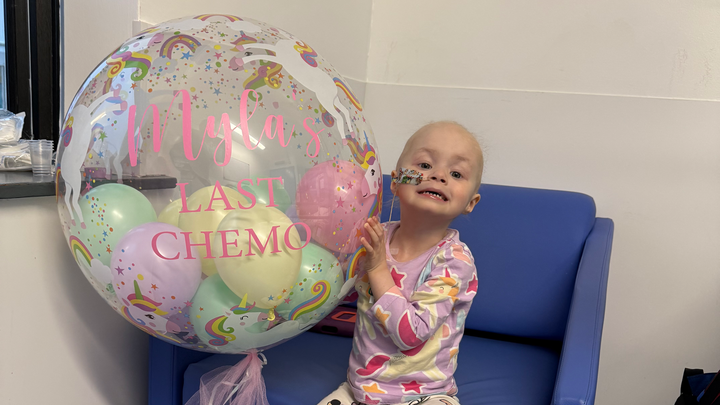 Hi, my name is Jayne and I'm fundraising for four amazing charities who have helped us on our cancer journey as a family this year. At just 2 years old, our daughter Myla was diagnosed with Ewing Sarcoma in April 2025. Since then she has undergone a tough 9 months of cancer treatment including 14 rounds of intense chemotherapy and 6 weeks of proton beam radiotherapy.
