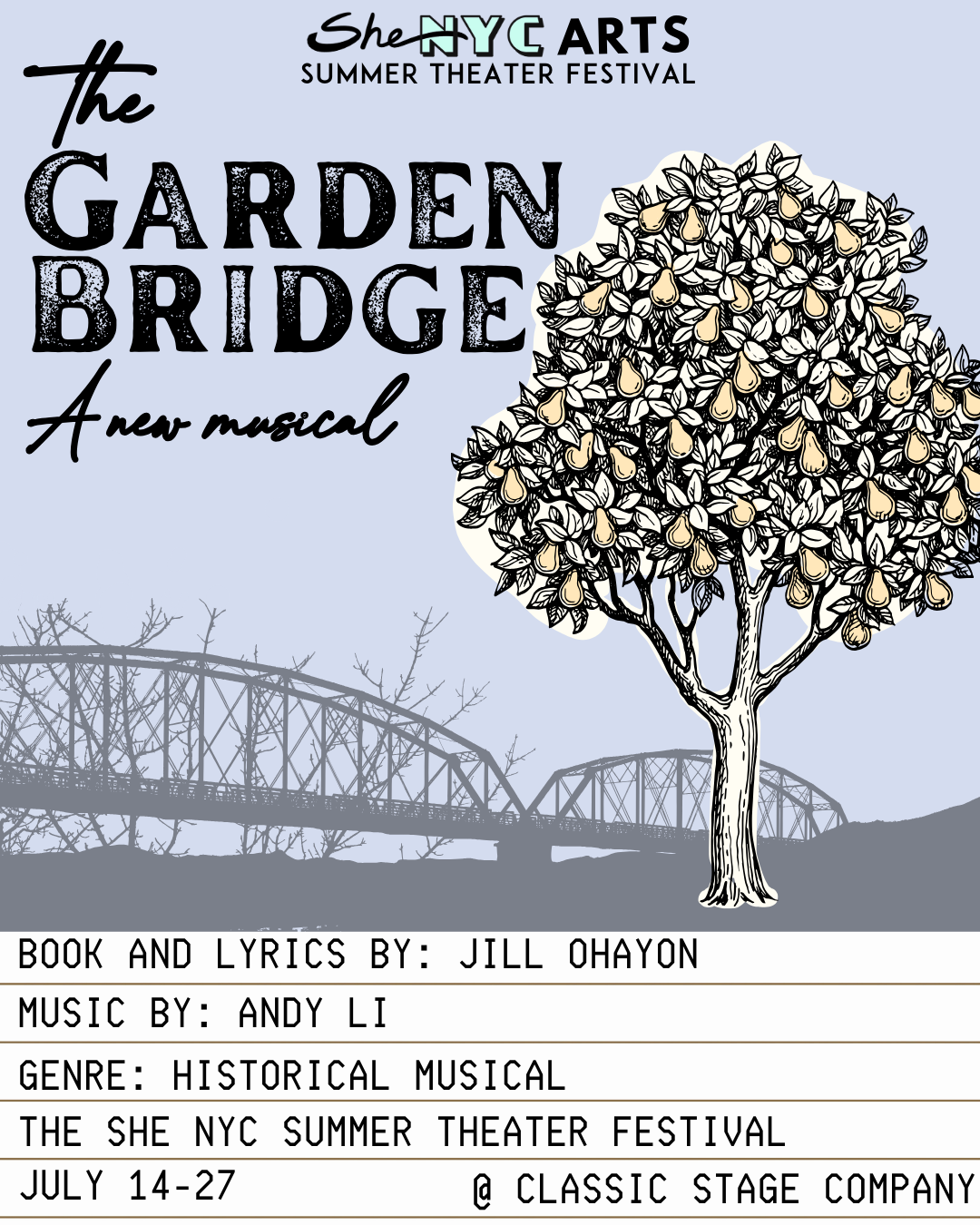 The Garden Bridge is excited to announce that it has been selected as one of four musicals to be featured in the SheNYC Arts Festival this summer at Classic Stage Company, one of the oldest Off-Broadway theaters in New York City.