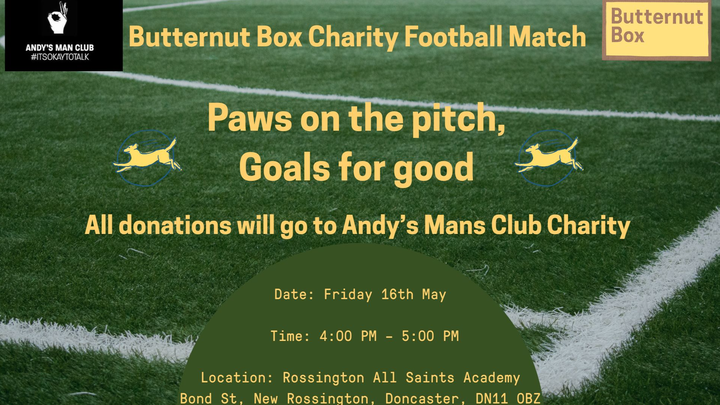 Want to join me in making a difference? We are holding a Charity football match between two of our Teams - Conan and Skye, with hope we can benefit ANDYSMANCLUB Limited, and any donation will help make an impact. Thanks in advance for your contribution to this cause that means so much! Details of the Football match can be found below.