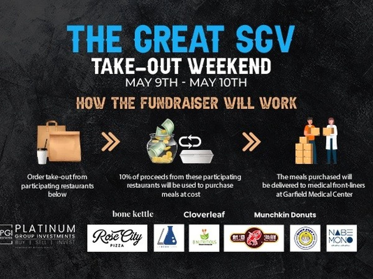 The Great SGV Take-Out Weekend is currently scheduled to happen on the weekend of May 9th - May 10th. The fundraiser and event will occur in 3 parts:
