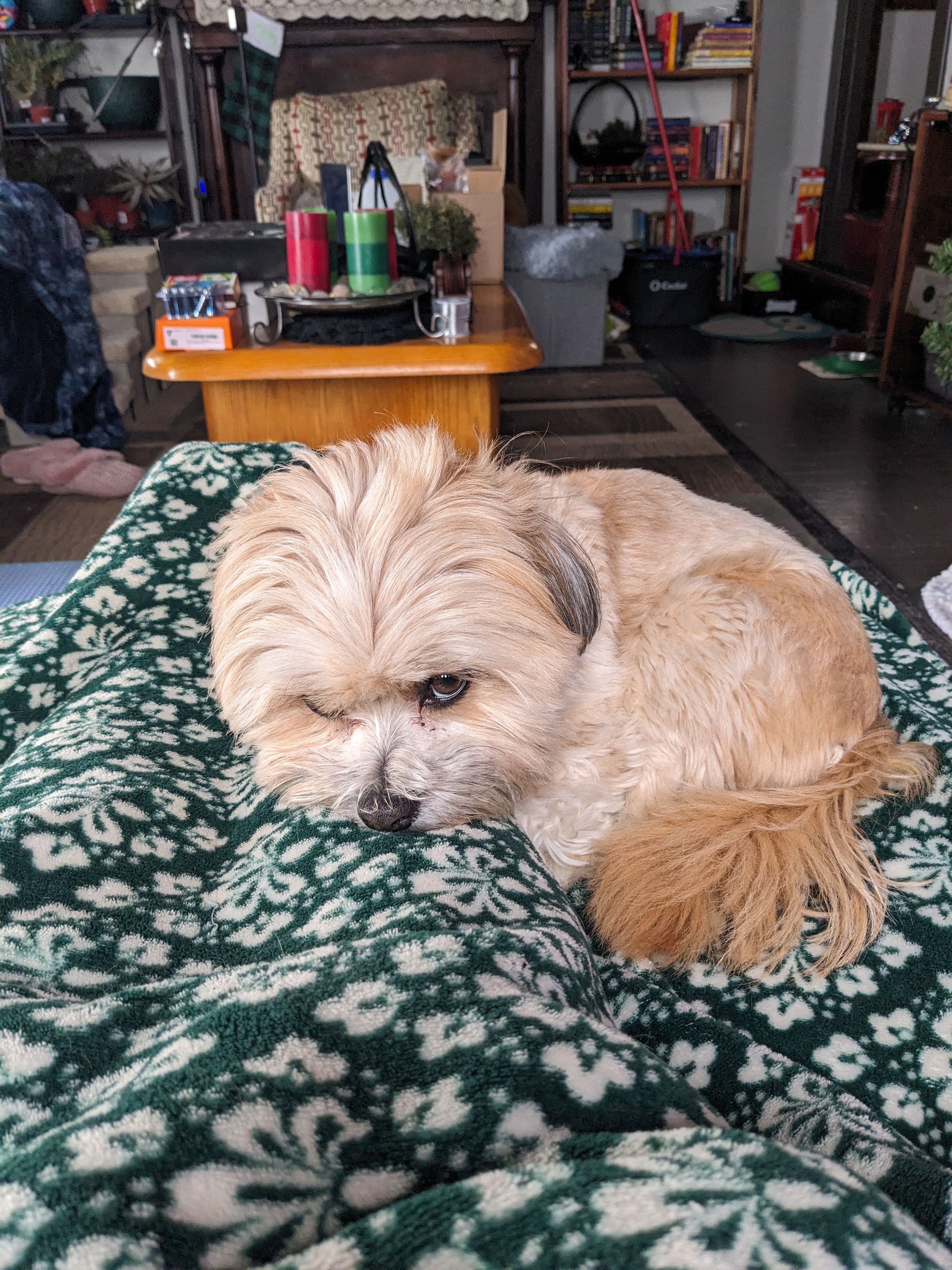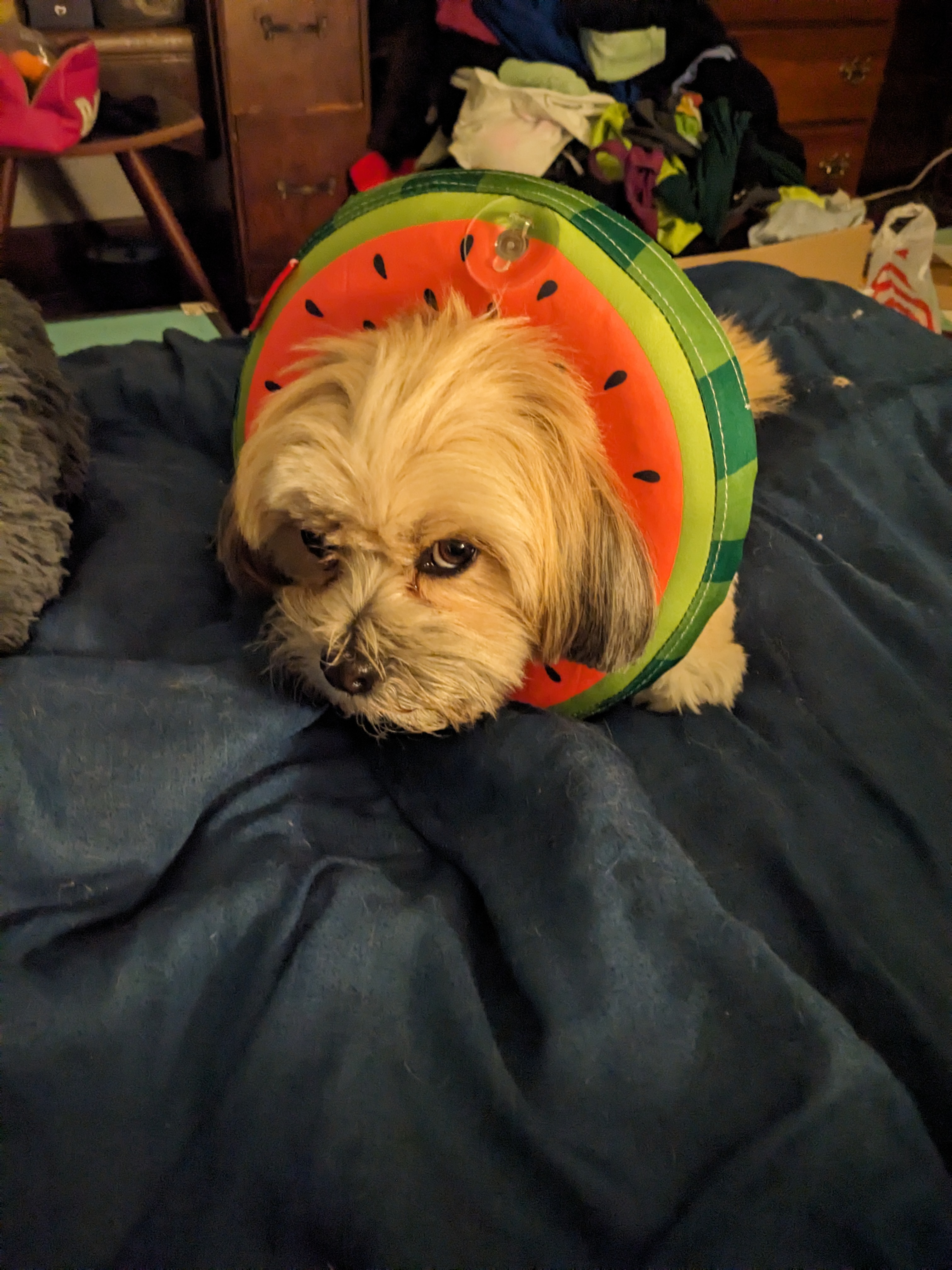 Oscar is a Shih Tzu mix (we have confirmed he's definitely a shit) and due to his genetics he is inclined to a condition that causes his knees to pop in and out of place. This causes temporary lameness until the knee pops back into place and will also lead to eventual permanent lameness and arthritis.
