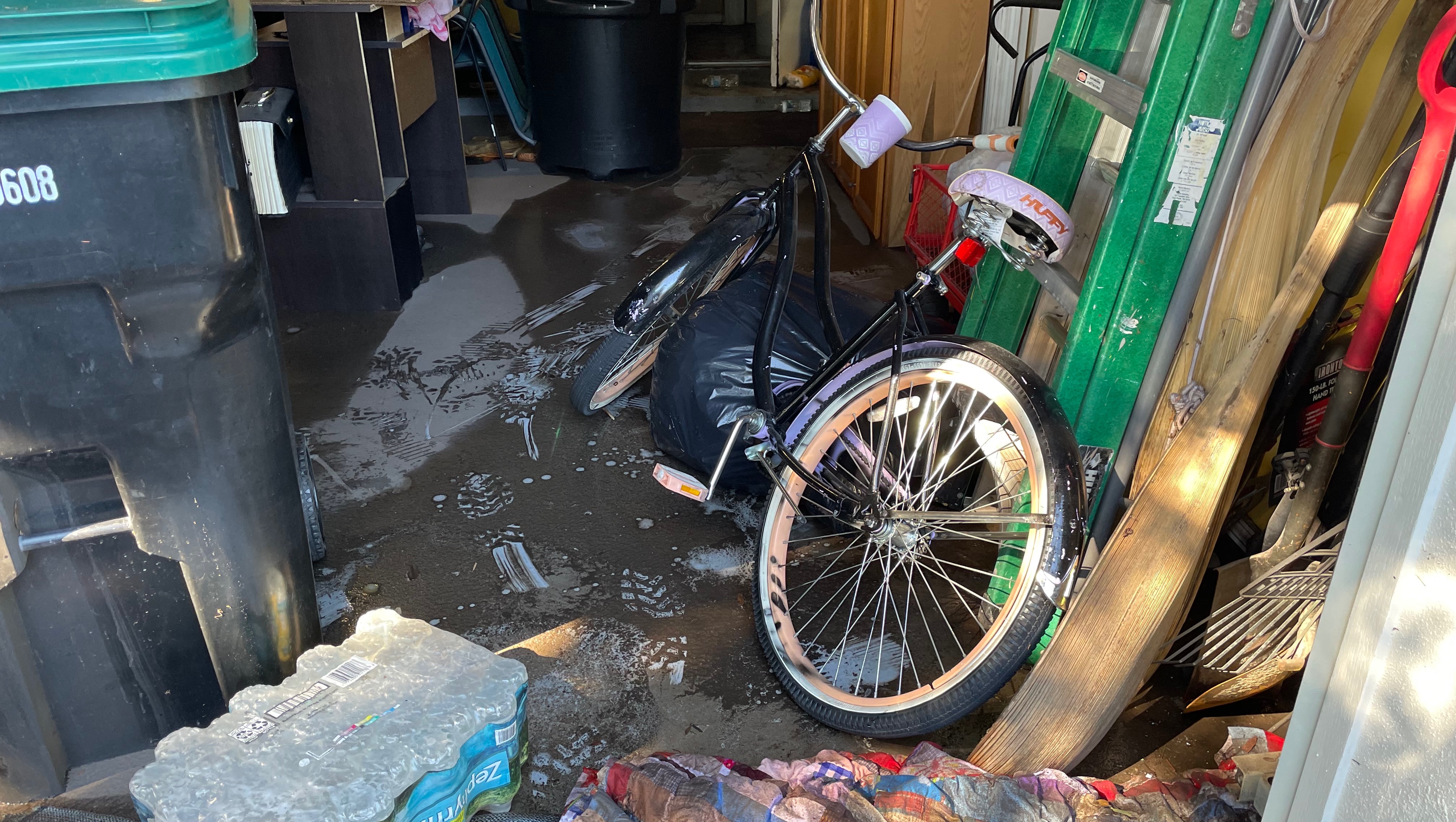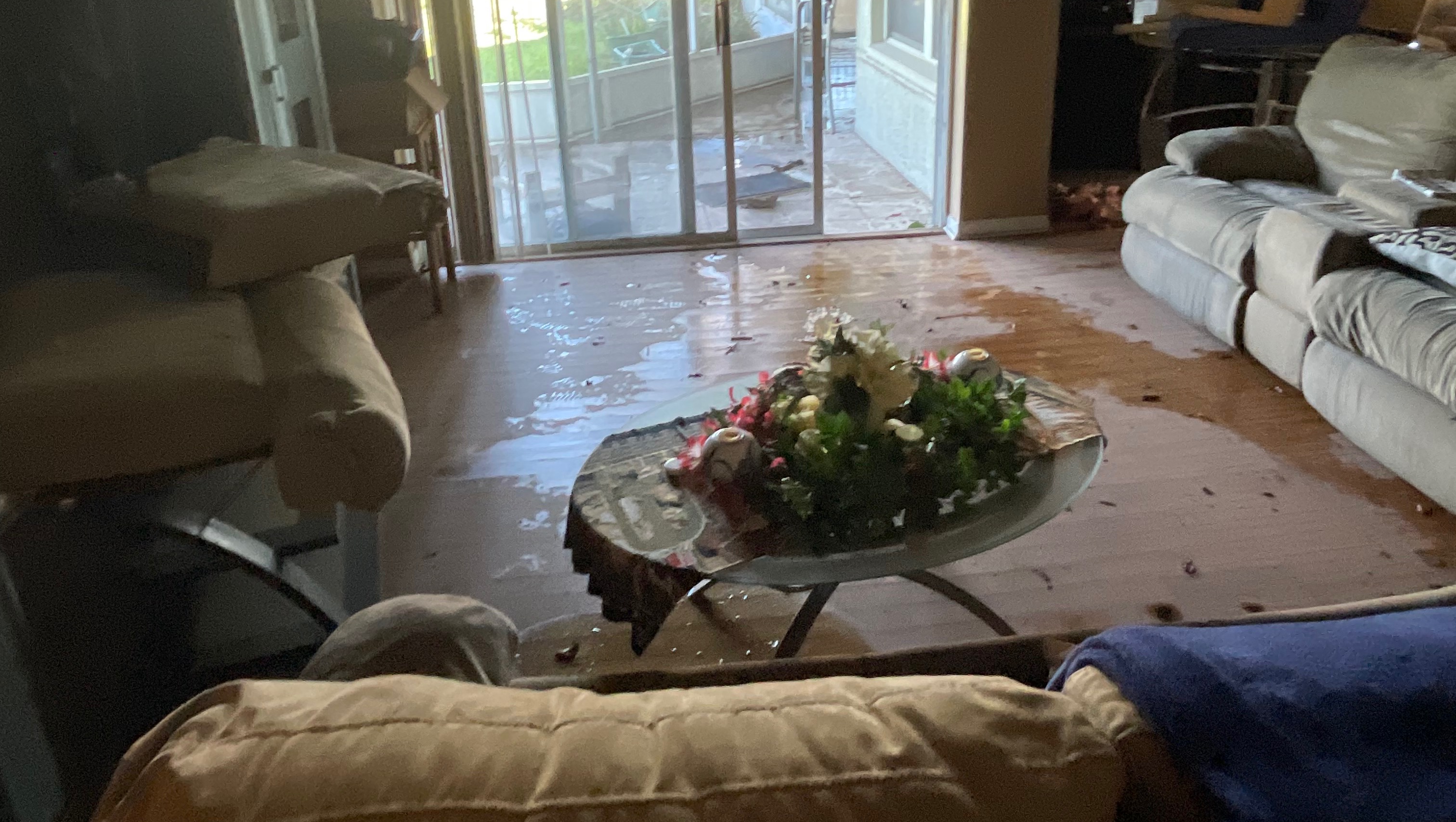 Thanks to the fire department mandating evacuations, our family, that includes my husband, Derek, 26-year-old daughter, Tamara, and 86-year-old mother, Theresa were taken by airboat to safety. We witnessed not only our own home being flooded but our neighbors’ homes and the fear and disbelief on everyone’s faces once we were safe. Thankfully, my sister Eleanor and her son allowed us to stay with her in her 2-bedroom apartment but due to the small space, it will be a temporary arrangement for the time being but we are safe! The roads were impassable for several days, and due to this, our neighbors created a hole in the wall in the back of the neighborhood to allow people to try to glimpse their homes (if possible). It took 3 days before the roads in the community were dry enough for us to view the damages to our home.