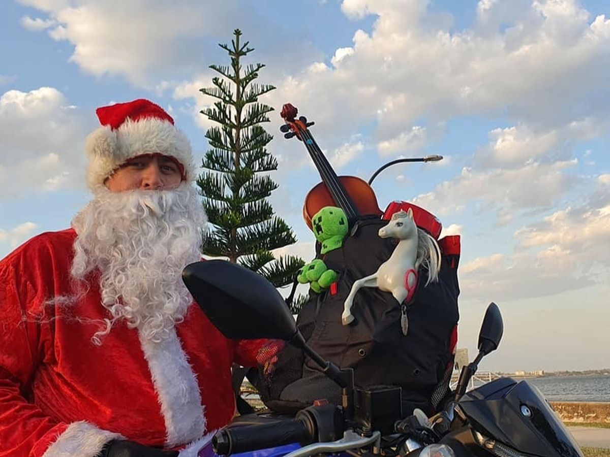 For years, each December I ride to and from my job in the city to Sandgate in my Santa suit. Every Christmas eve from about 5pm until 10pm I ride the streets just hoping to make some kids Christmas as they look out their window and see Santa riding a motorbike.