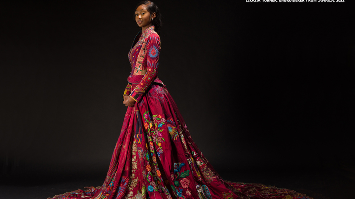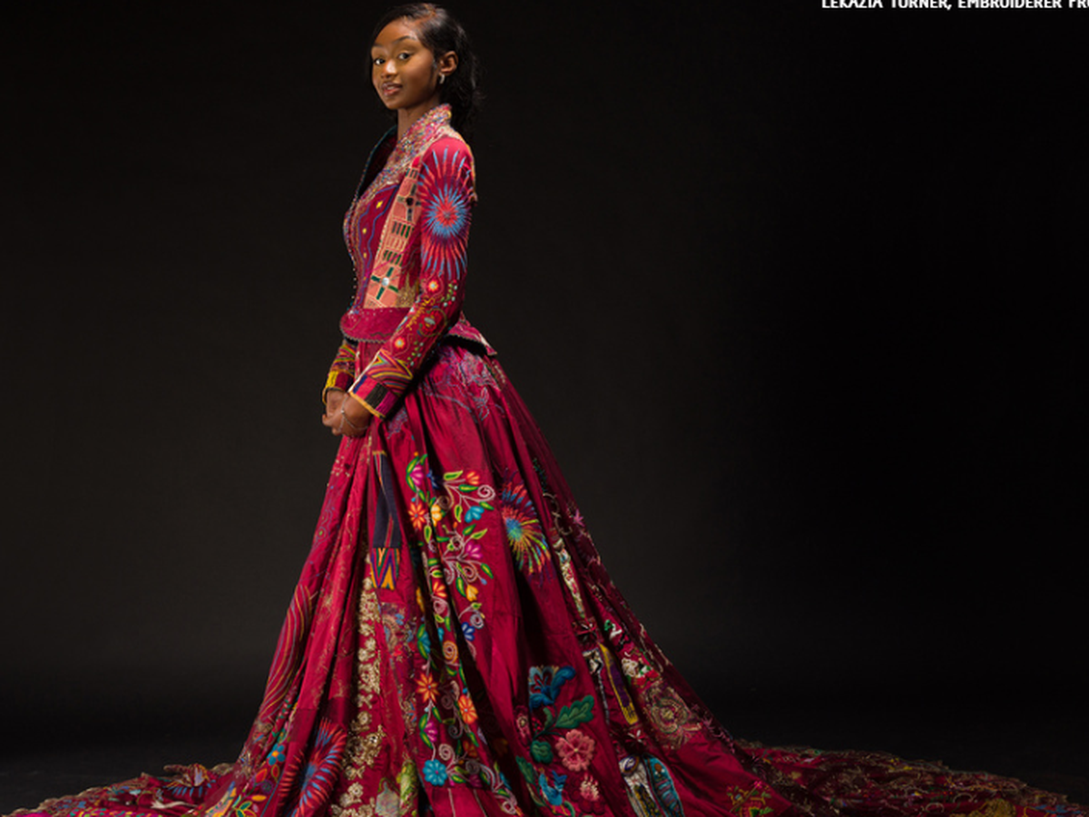 The dress embroiderers include 380 people from over 51 countries throughout the world including Palestine, Syria and Ukraine, Iran, Iraq, China, Nigeria and Namibia, Kosovo, Bosnia and Herzegovina, Rwanda and DR Congo, South Africa, Mexico and Egypt, individuals in Kenya, Japan, Türkiye, Jamaica, Sweden, Peru, Czech Republic, Dubai, Afghanistan, Australia, Argentina, Germany, Switzerland, Canada, Tobago, Vietnam, Estonia, USA, Russia, Pakistan, Wales, Colombia and England, Montenegro, Brazil, Malta, Singapore, Eritrea, Norway, Poland, Finland, Ireland, Romania and Hong Kong as well as artisans from embroidery studios in India and Saudi Arabia.