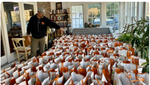 The Annual Thanksgiving Basket Brigade; Volunteers donate and deliver custom-made gift baskets of food for a Thanksgiving Feast to families going through challenging times.