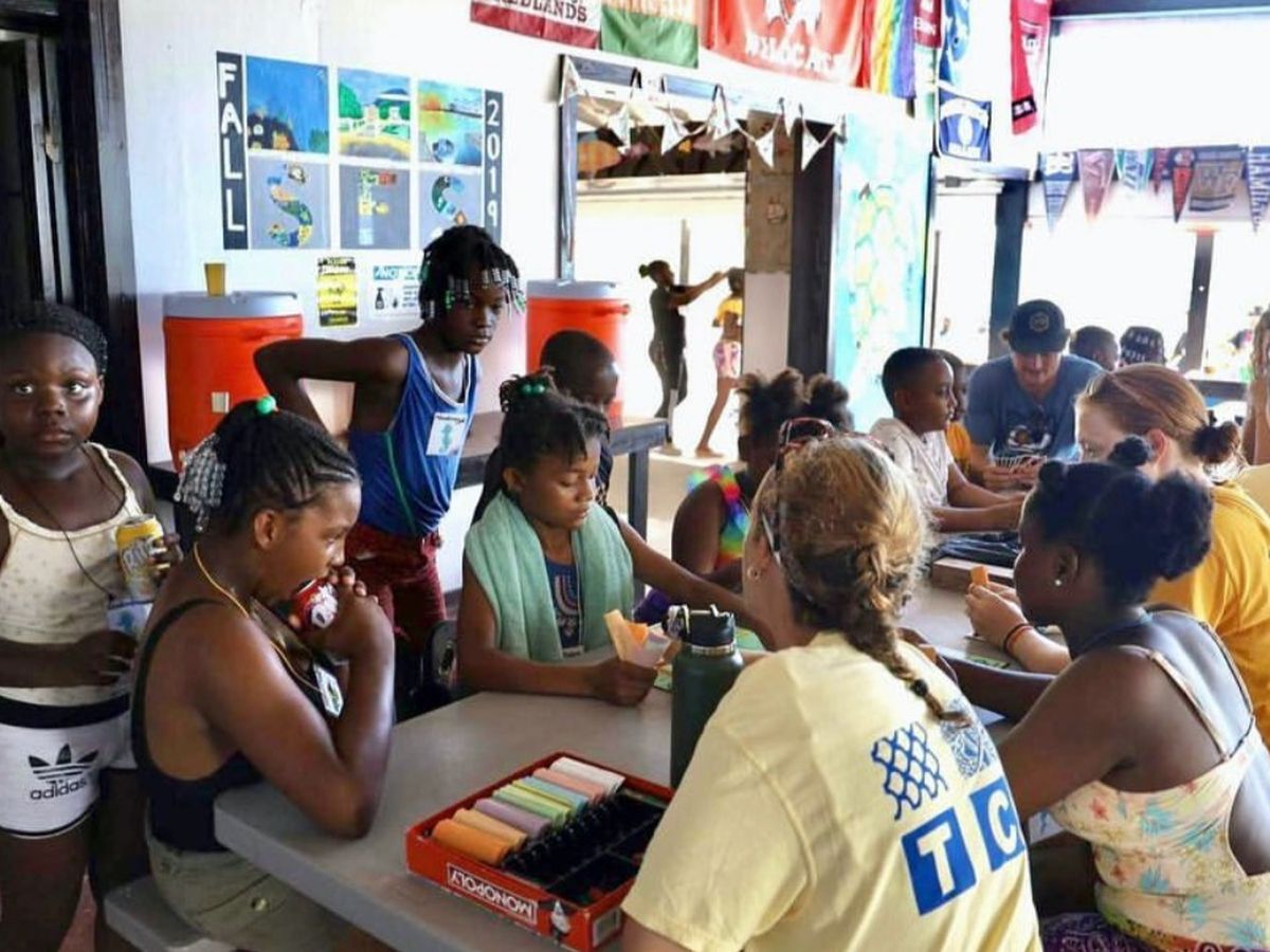 Hello, we are the School for Field Studies in Turks and Caicos Fall class of 2022. We have been volunteering with the local community and helping young kids with school and swim lessons, and giving them time to play games and have fun! Due to Hurricane Irma in 2017, the Primary School and High School was completely devestated, and the schools lost all of their textbooks and school supplies. Thus, all the past classes of SFS in Turks and Caicos has helped raise money for the students on South Caicos. In addition, the money we raises helps the SFS students buy a site at our center for a mural, so that the Fall class of 2022 can be remembered.