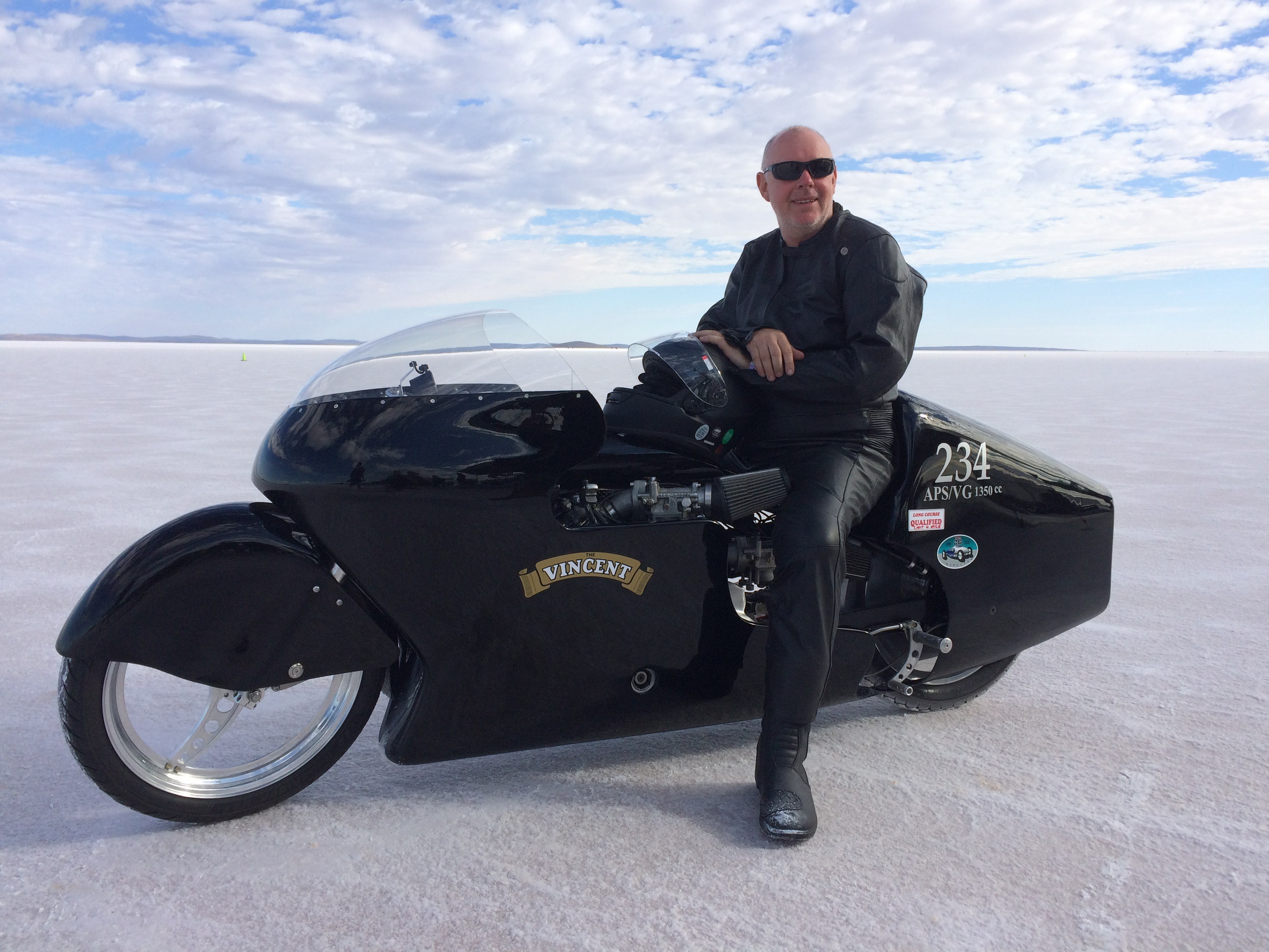 It all began in 2000, with Mal's stripped-down, 50-year-old road bike taken to the salt flats of Lake Gairdner in South Australia for the annual Dry Lake Racers Australia speed trials. That year, the bike clocked in at 121 mph. No record, but a deep love for land speed racing was born.