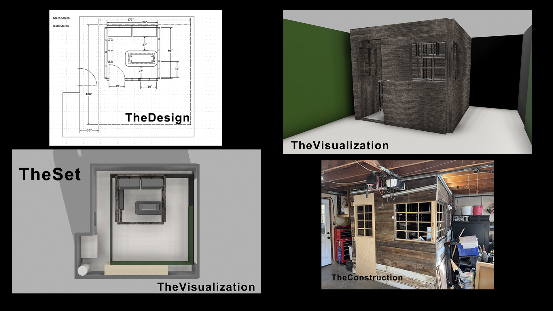 I designed and built the set in my garage and to make certain that my concept for this part of the project would look as I expected I shot and composited TheShopTestComp video below.