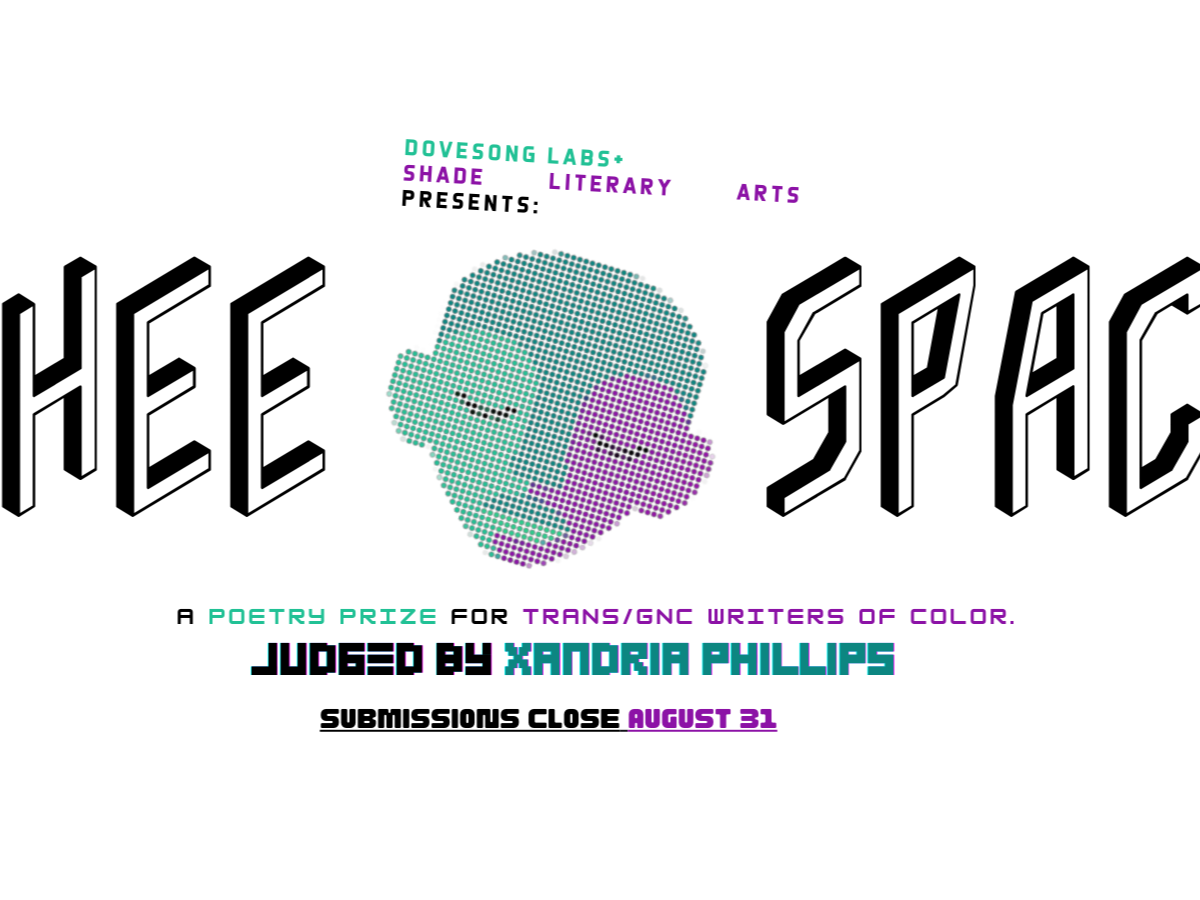 While many are working to radically transform the literary prize complex, we must also intentionally devote time & resources to our own communities & find ways to platform each other. With that, Dovesong Labs and Shade Literary Arts present: THEE SPACE, a poetry prize for Trans/GNC writers of color.
