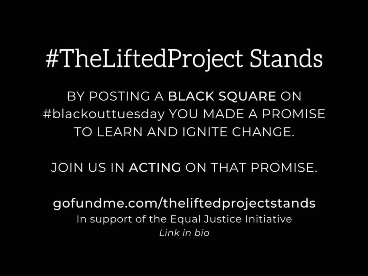 The Lifted Project has started a group donation to the Equal Justice Initiative, a non-profit committed to ending mass incarceration and excessive punishment in the United States, to challenging racial and economic injustice, and to protecting basic human rights for the most vulnerable people in American society.