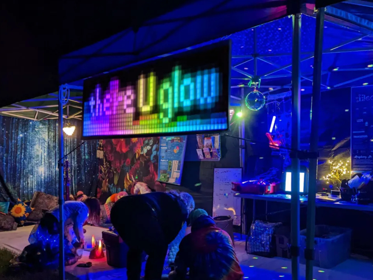 To picture There U Glow, imagine a chill, aesthetic, welcoming pop-up outdoor space designed carefully to engage a variety of marginalized people in electronics, LEDs and soldering for the first time, or the millionth.