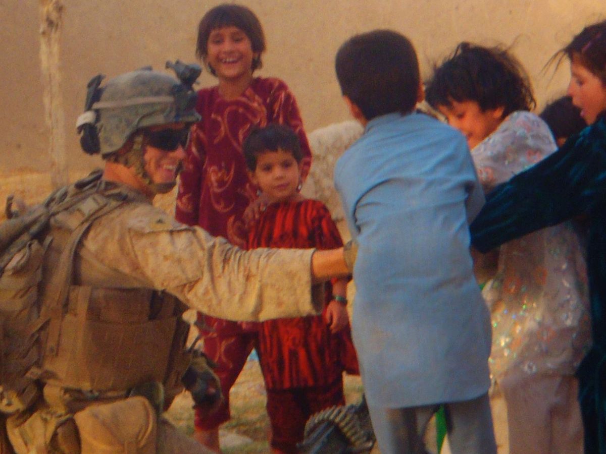 Derek Hines was the little kid who every year said, "I don't want Christmas presents, give mine to the poor kids." Here he is (photo), a young man in war-torn Afghanistan on one of his two combat deployments as a US Marine, giving candy to poor children.