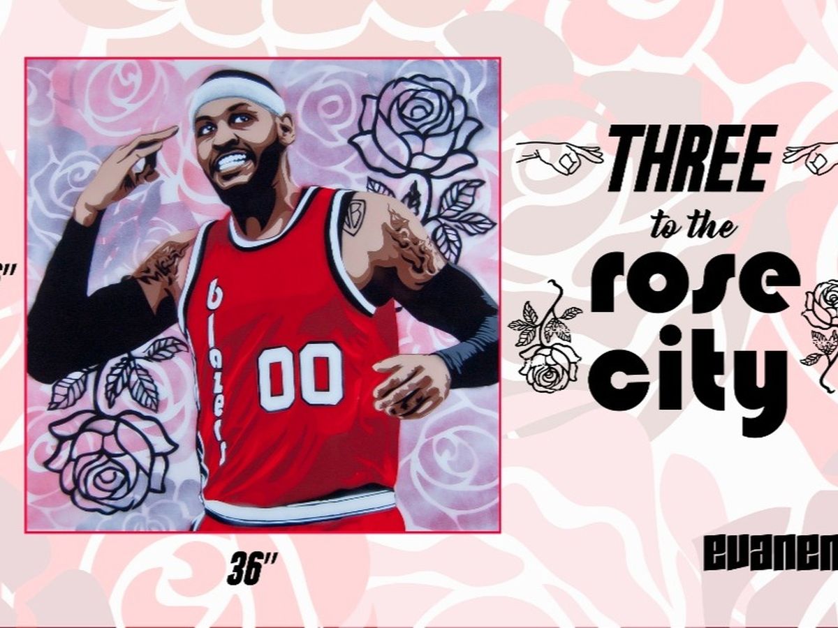 I recently made a painting of newly acquired Trail Blazer Carmelo Anthony. I've had a bunch of people asking me how much I was going to charge for this piece. After a few days of consideration, I came to the realization that I didn't want to sell it to someone and pocket the money. I want to do something more meaningful with it. And that's where you come in.