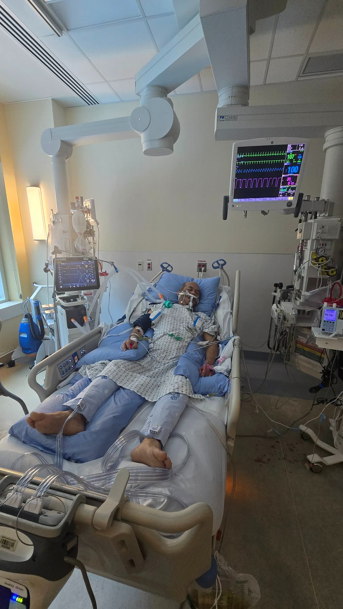 It is hard to put into words the cruelty of this situation. After three years of waiting to hold him, she is now forced to watch him through a grainy video call, unconscious in a hospital bed. She can't whisper in his ear. She can't hold his hand to let him know she's there. She is thousands of miles away, completely helpless.