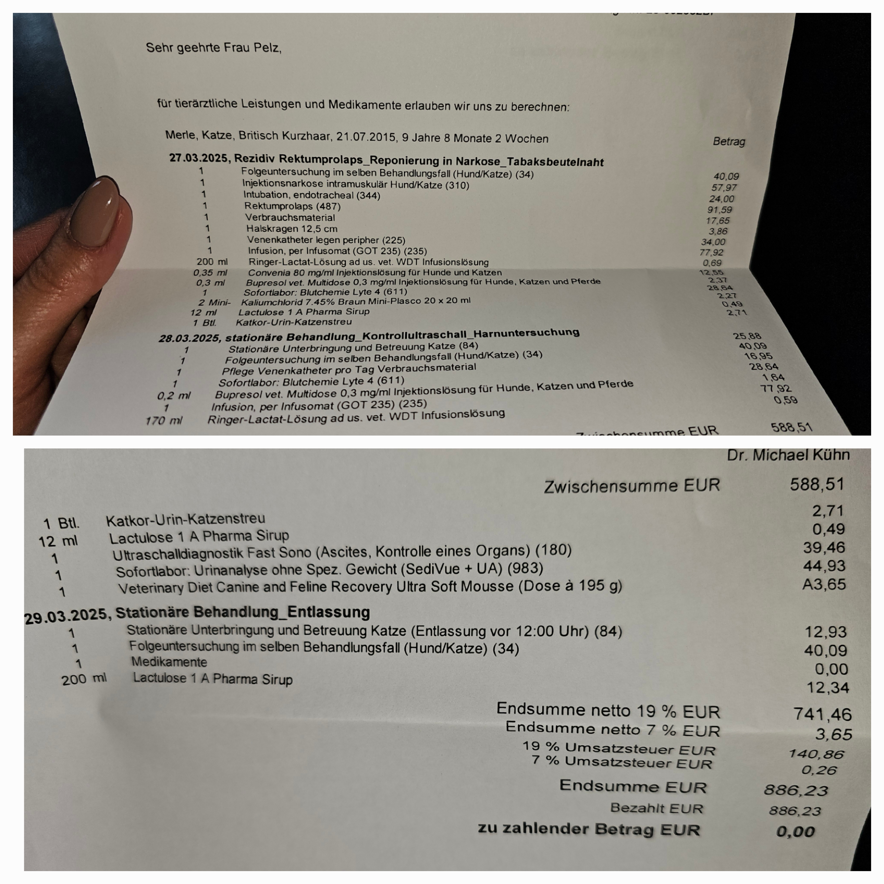 Die Kosten aktuell liegen bis jetzt bei ca. 2.500€....und leider ist noch kein Ende in Sicht.
