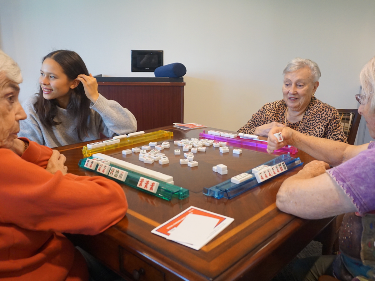 We’re high school students with Tiles for Hope, a student-led nonprofit that aims to form intergenerational friendships with seniors experiencing neurodegeneration through Mahjong!
